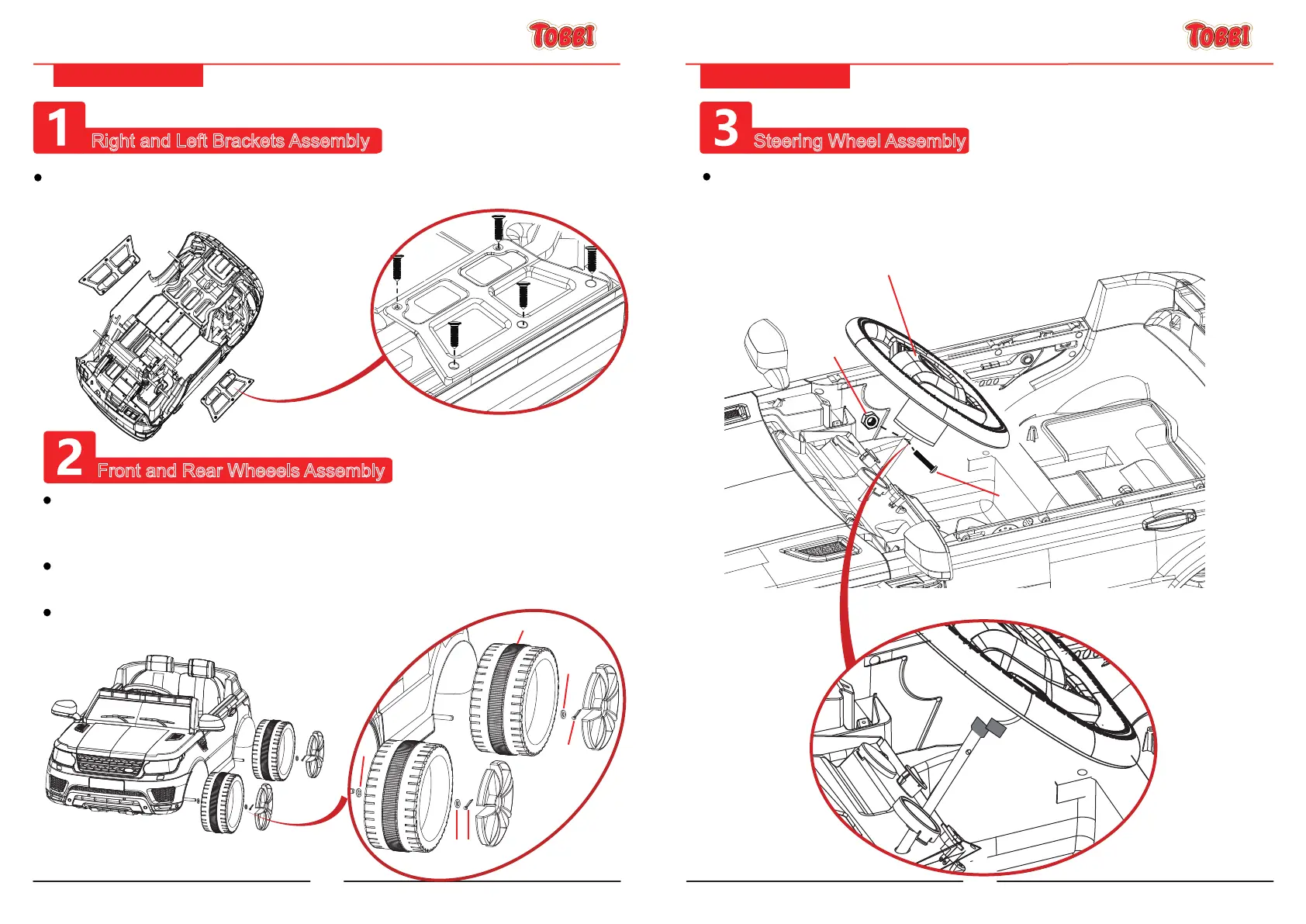 Assemble the rear wheel(D) and a washer(J) step by step, then use