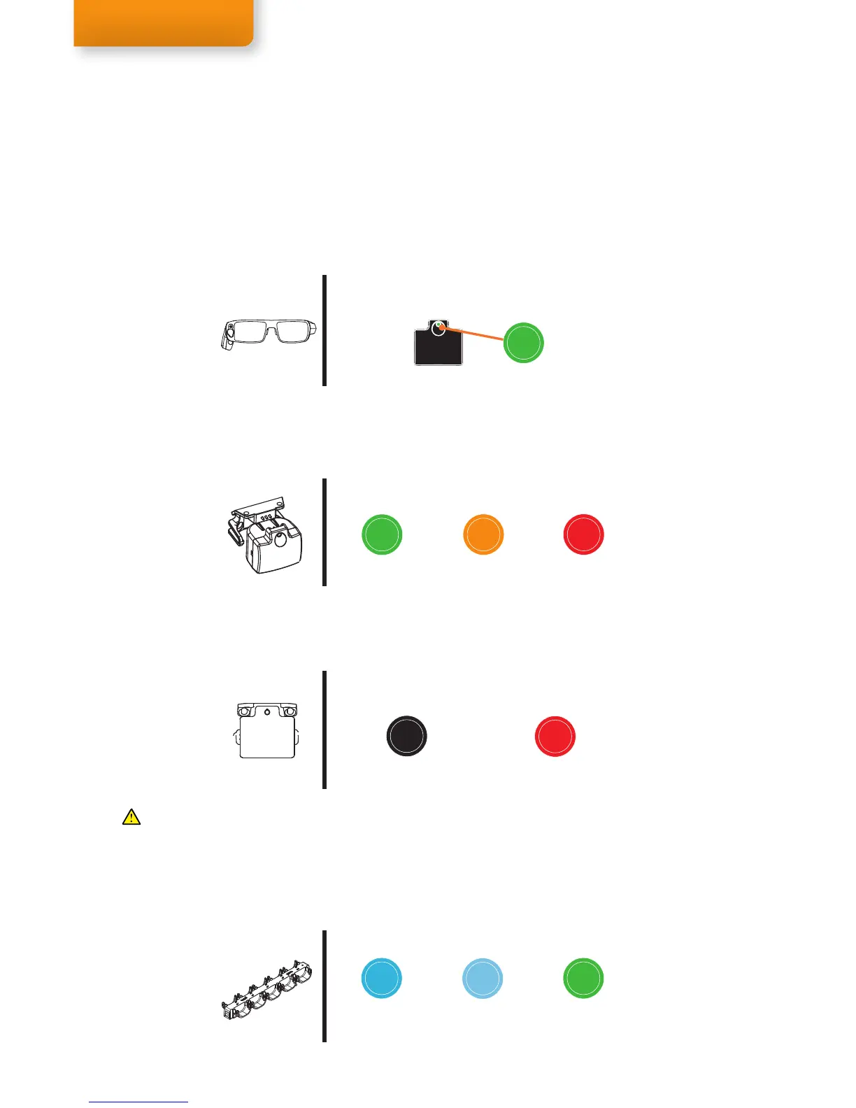 is within range. This mode is used to conduct a calibration. A solid green light indicates the glasses have been