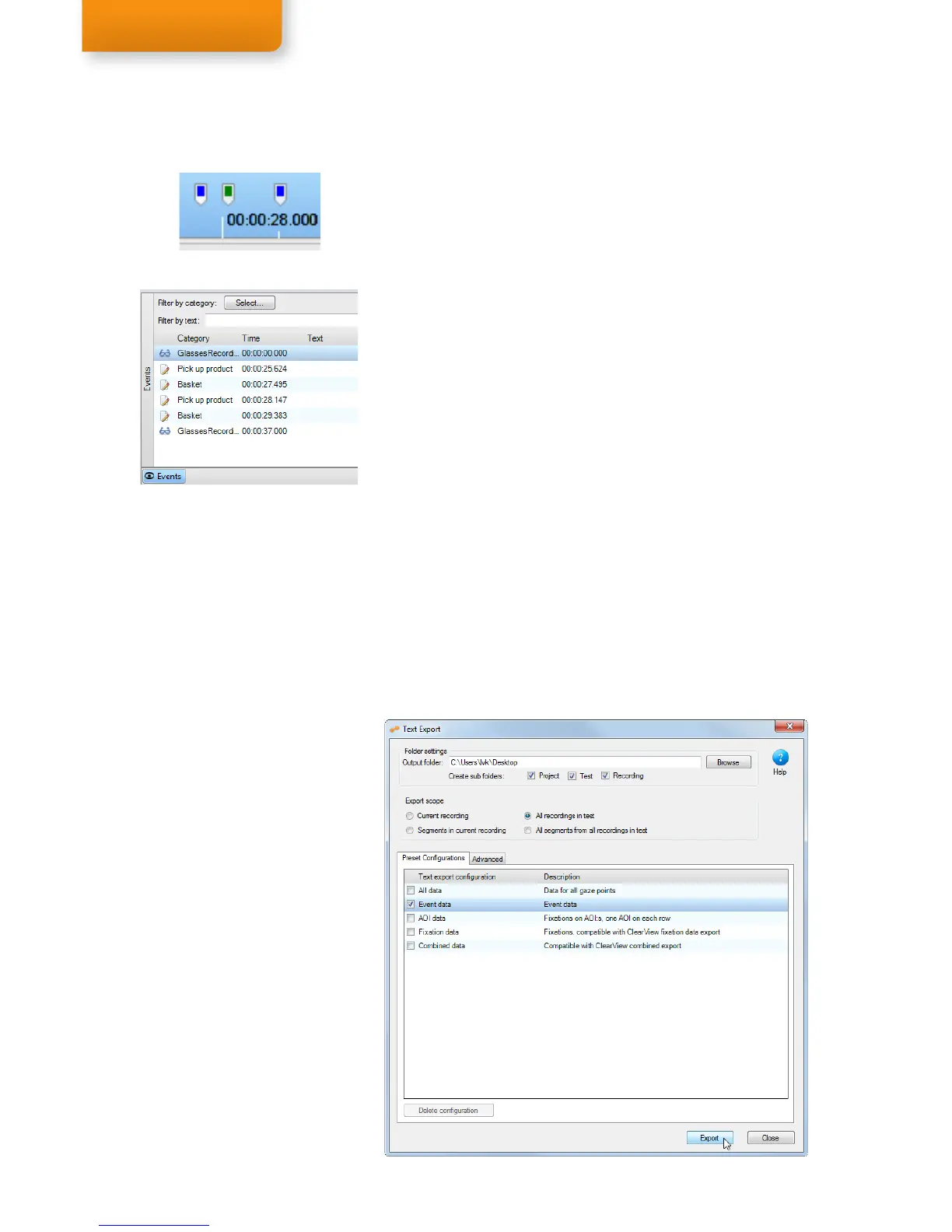5. Click the Export button to export the event data.