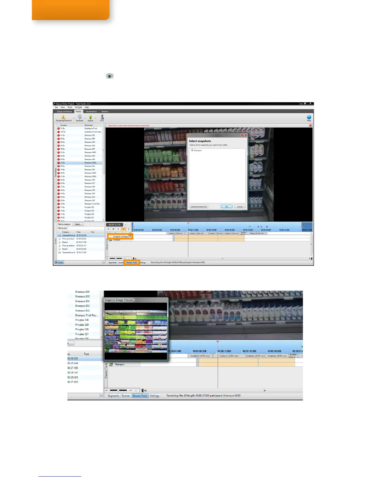 of a selected recording, open the Glasses Tools (see screenshot below). To see individual IR Marker coverage per