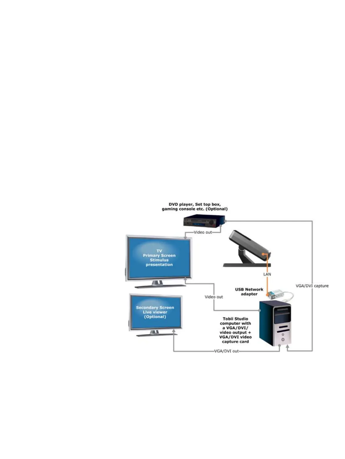 For this setup, the image from the Tobii Studio computer has to be displayed on the screen of a Tobii Eye