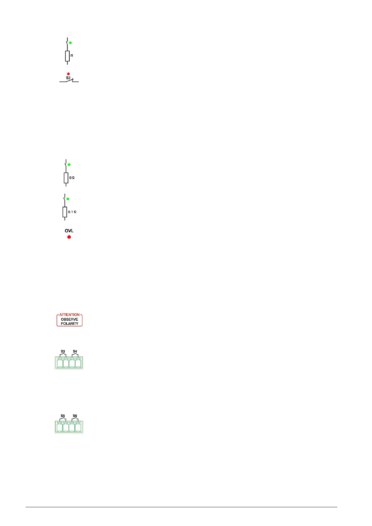 Polarity notice for the power switch. Voltages must be connected only with the correct