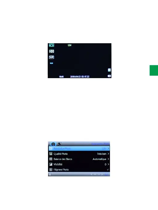 configuration du mode photo. Appuyez deux fois sur MENU pour