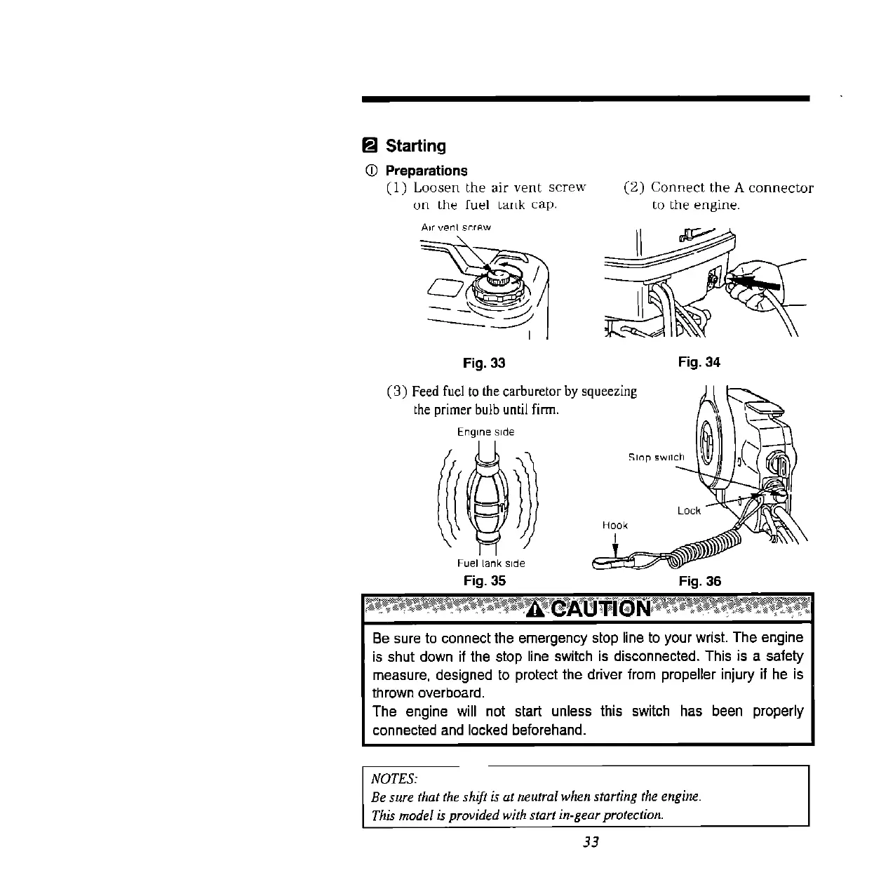 Be sure that fhe shift is at neutral when starting the engine.