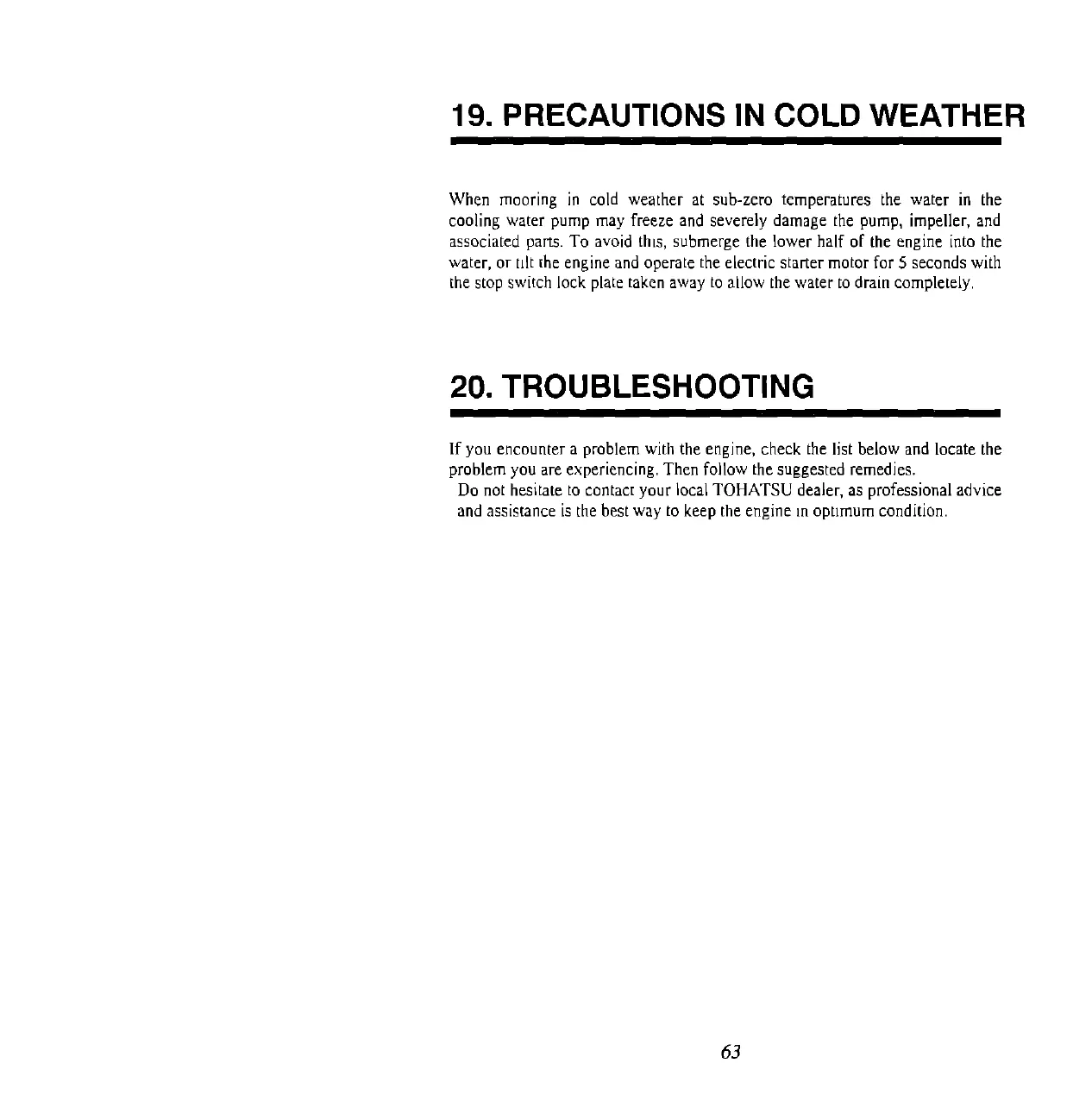 19. PRECAUTIONS IN COLD WEATHER