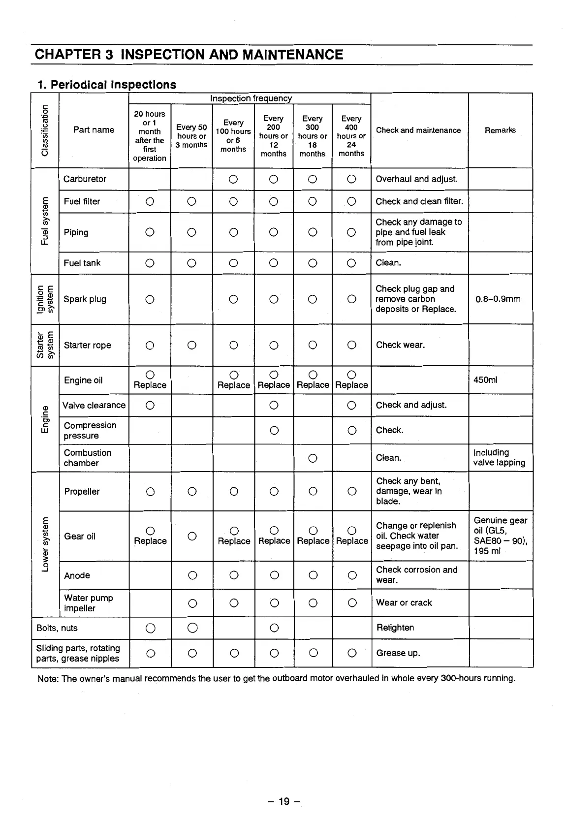 TOHATSU 5 - Chapter 3: Inspection and Maintenance Procedures; Periodical Inspection Schedule