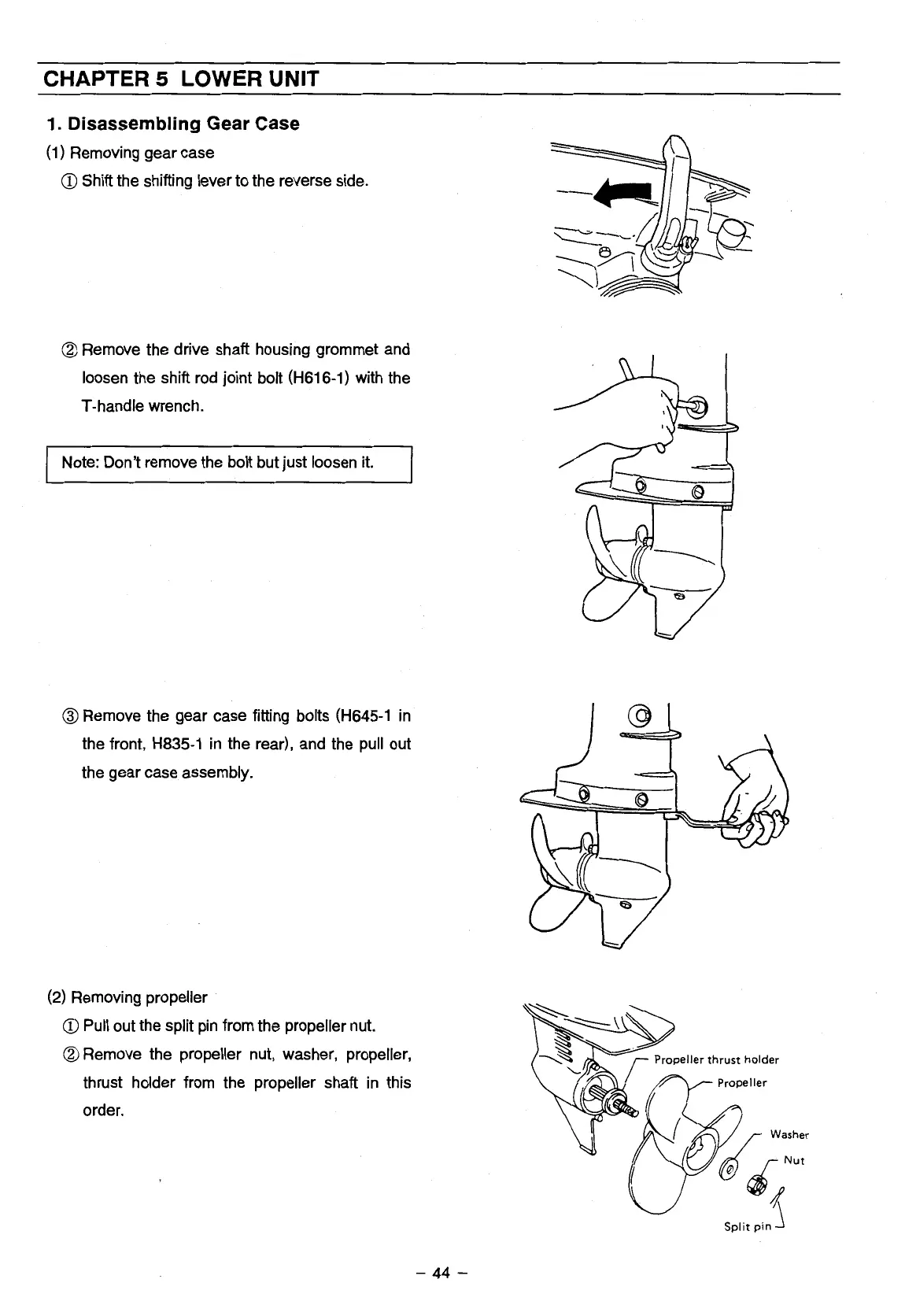 TOHATSU 5 - Chapter 5: Lower Unit Maintenance; Gear Case Disassembly and Component Removal