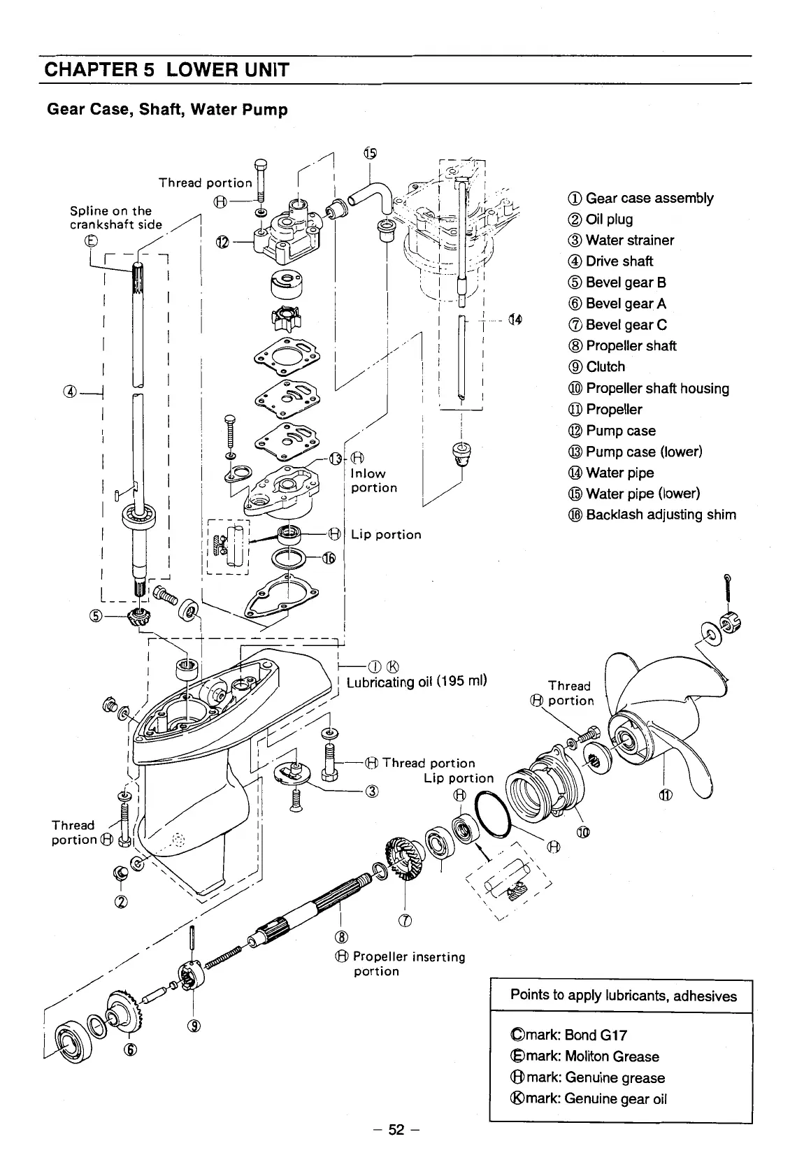 TOHATSU 5 - Gear Case, Shaft, Water Pump