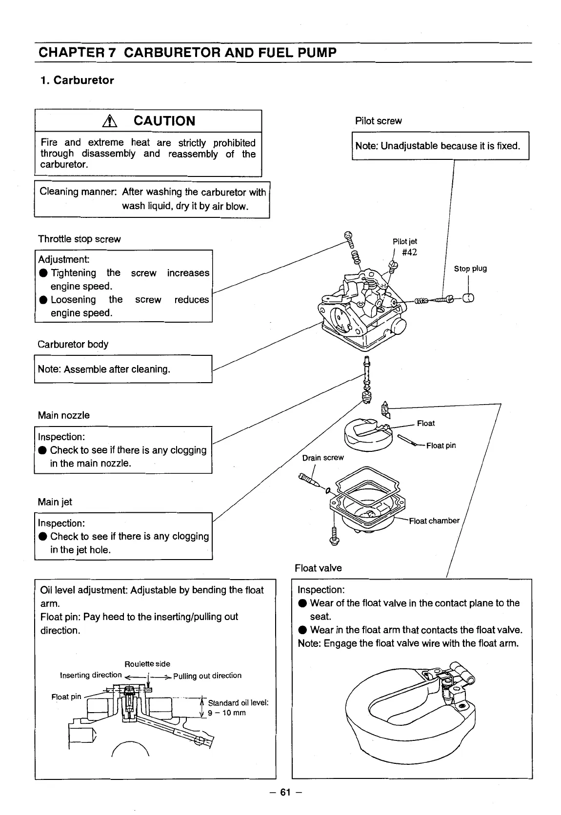 TOHATSU 5 - Chapter 7: Carburetor and Fuel Pump Service; Carburetor Inspection and Adjustment