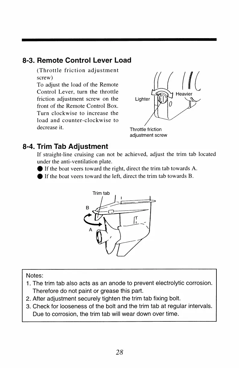 TOHATSU 8 - Remote Control Lever Load Adjustment; Trim Tab Adjustment for Steering Correction