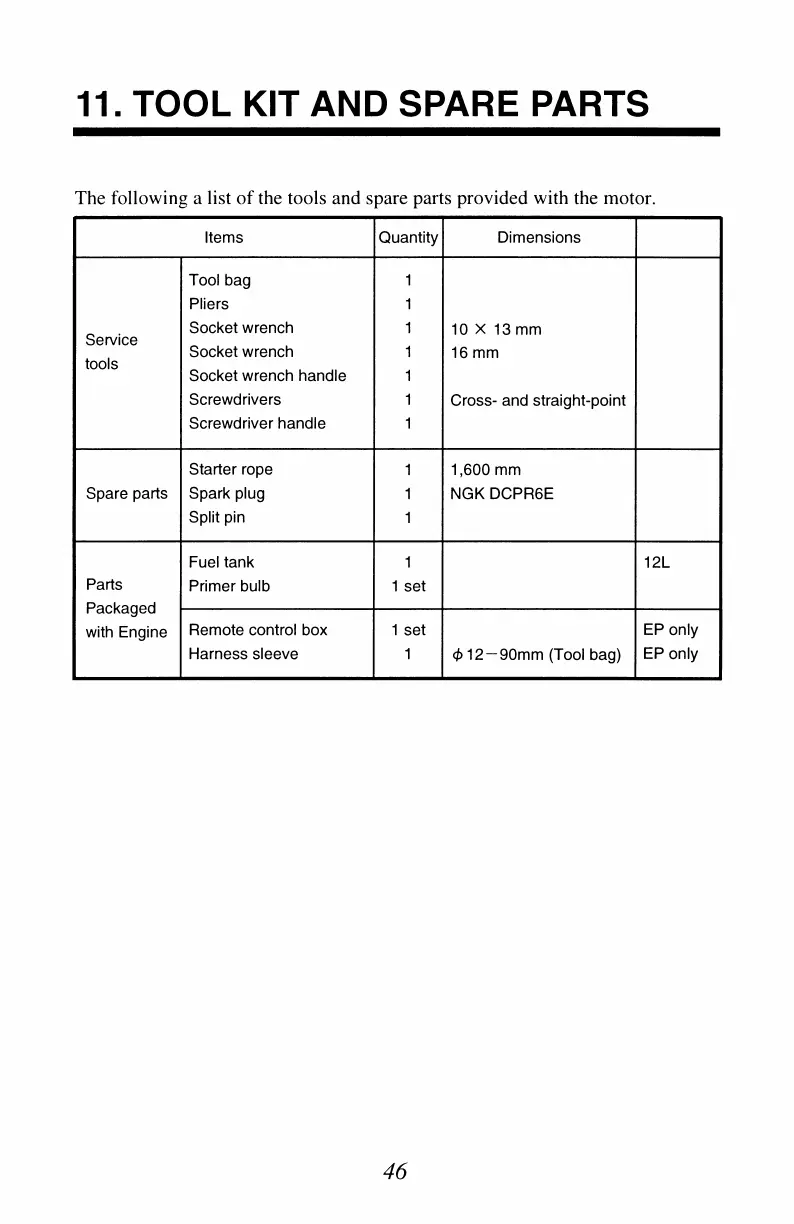 TOHATSU 8 - 11. Tool Kit and Spare Parts