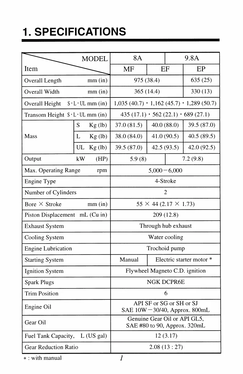 TOHATSU 8 - 1. Specifications