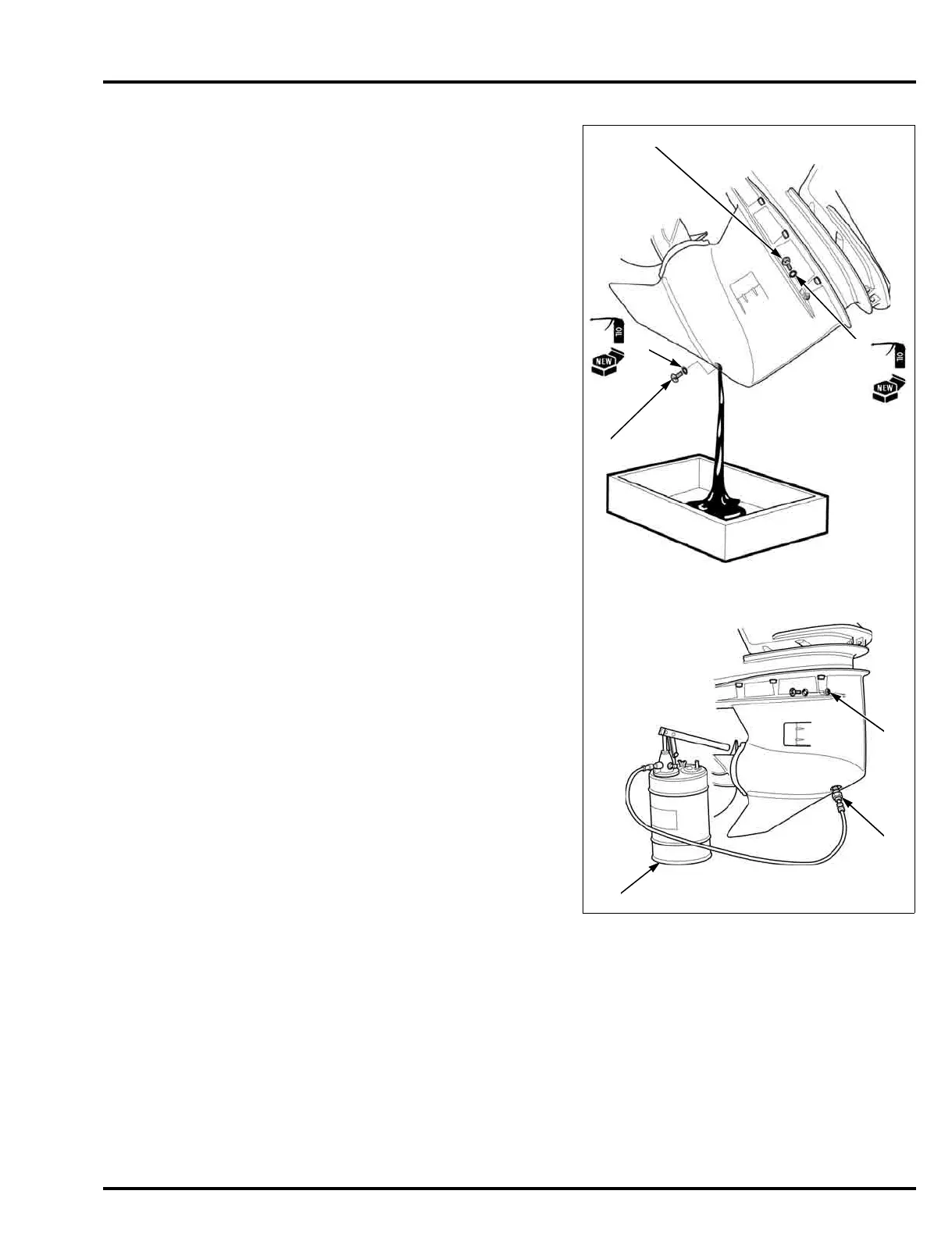 Remove the oil drain plug bolt [1] and oil check bolt [2],