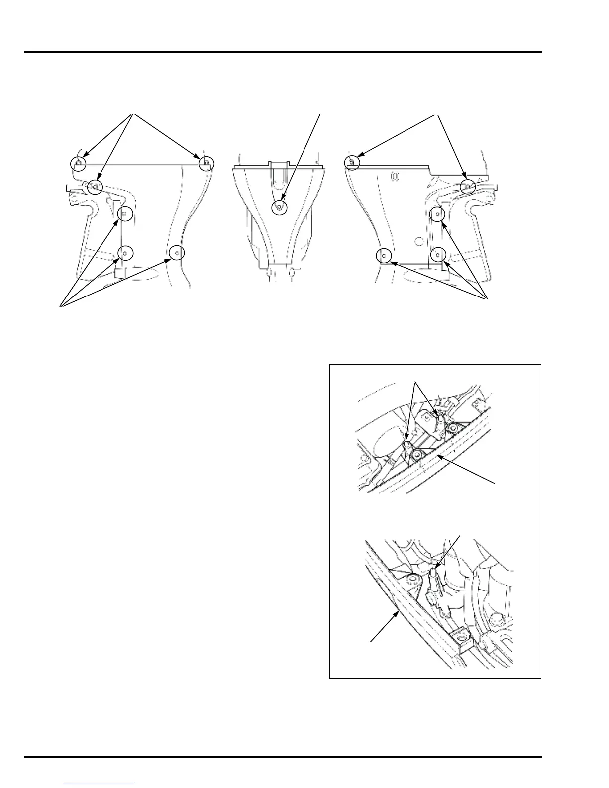 Remove the six bolt/washers [1], five special bolts [2], and rear bracket bolt [3] from the L./R. engine under