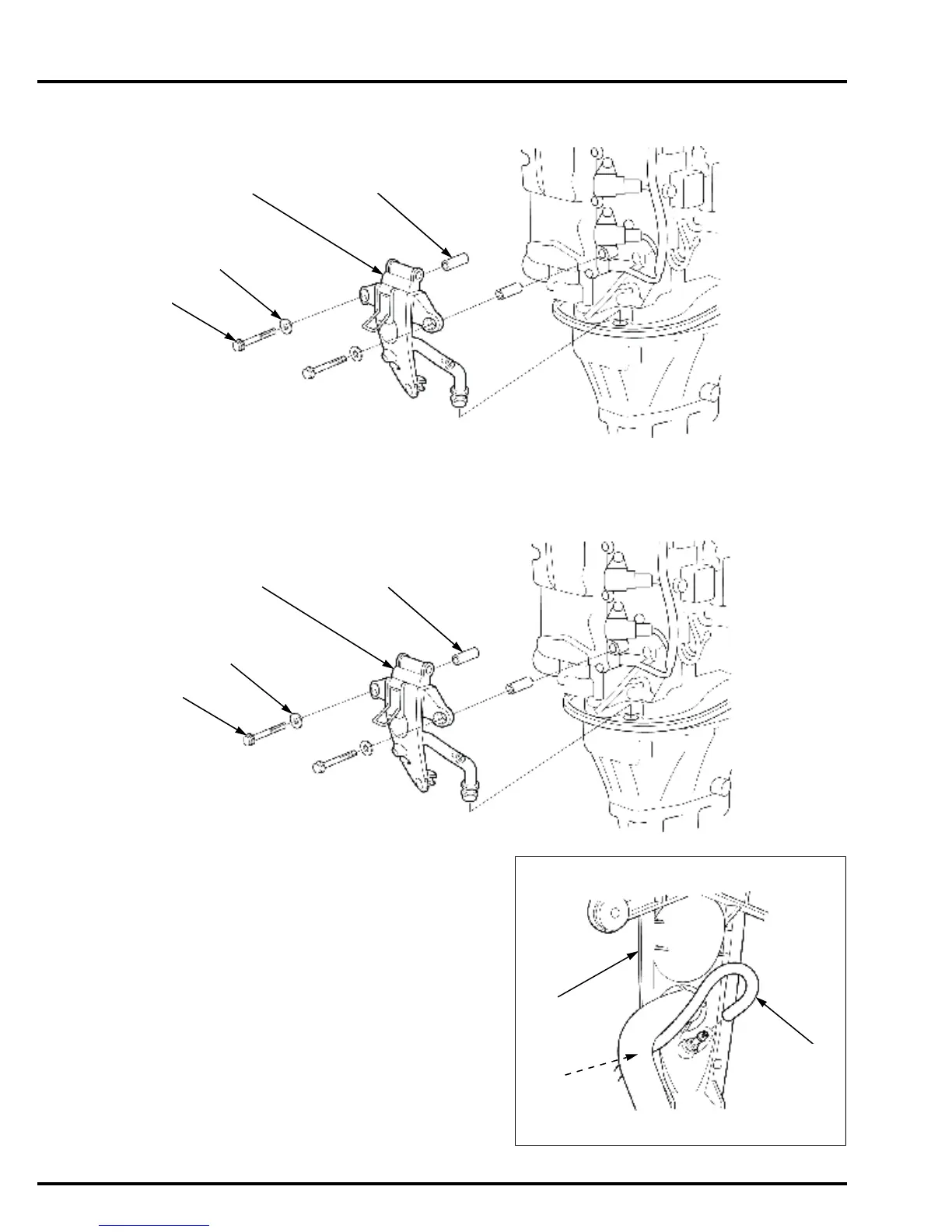 Install the under cover rear bracket [1] and two distance collars [2] on the outboard motor.