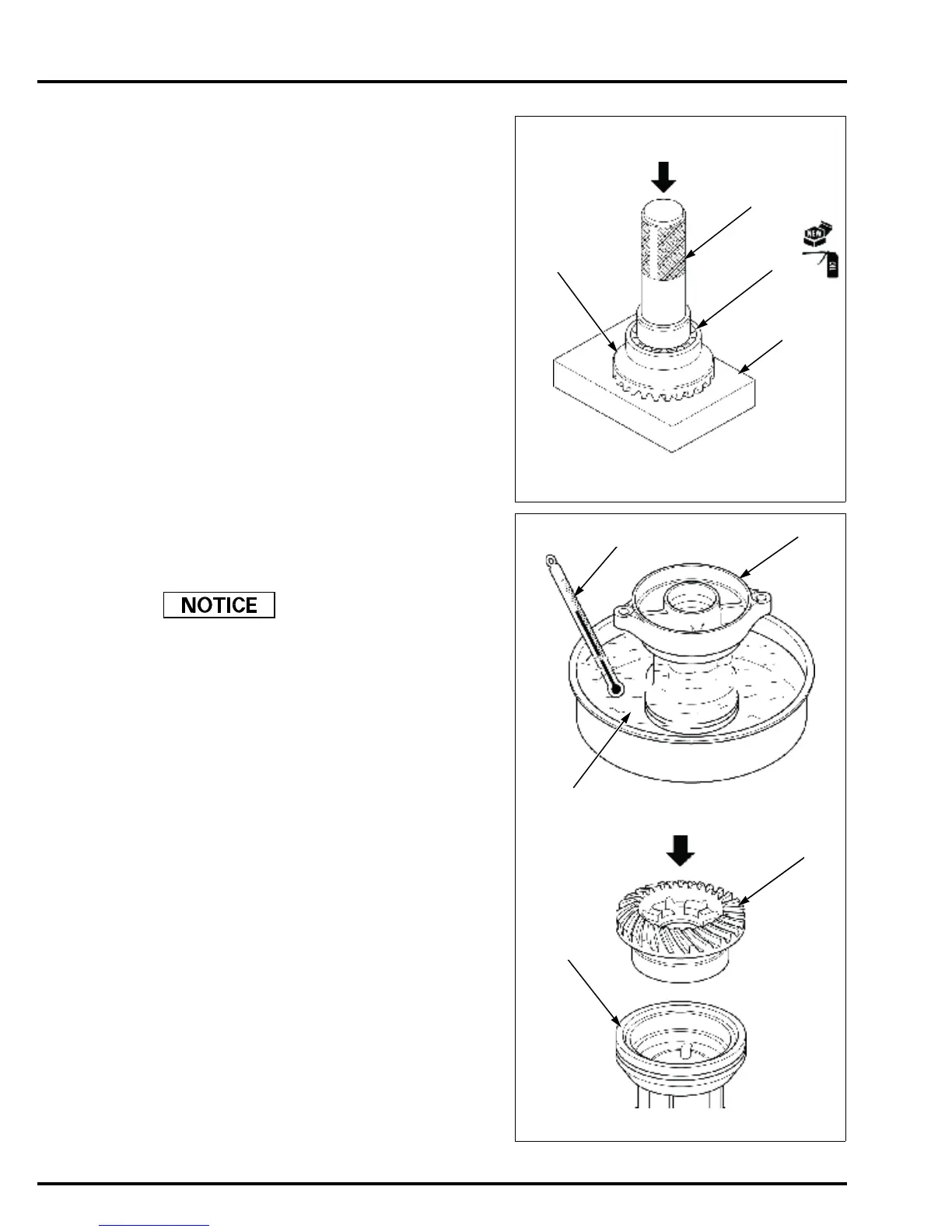 Set a wood block [2] under the reverse bevel gear [3].