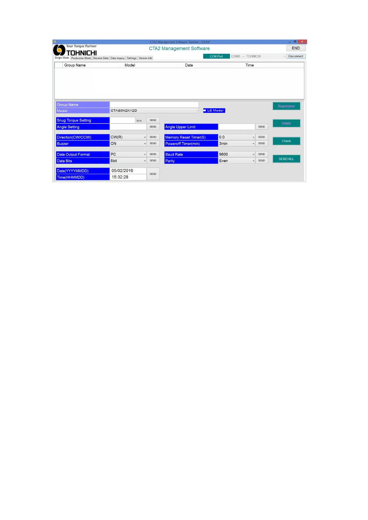 ・Click “SEND ALL” to transfer all the setting values to CTA2-G to overwrite the settings on