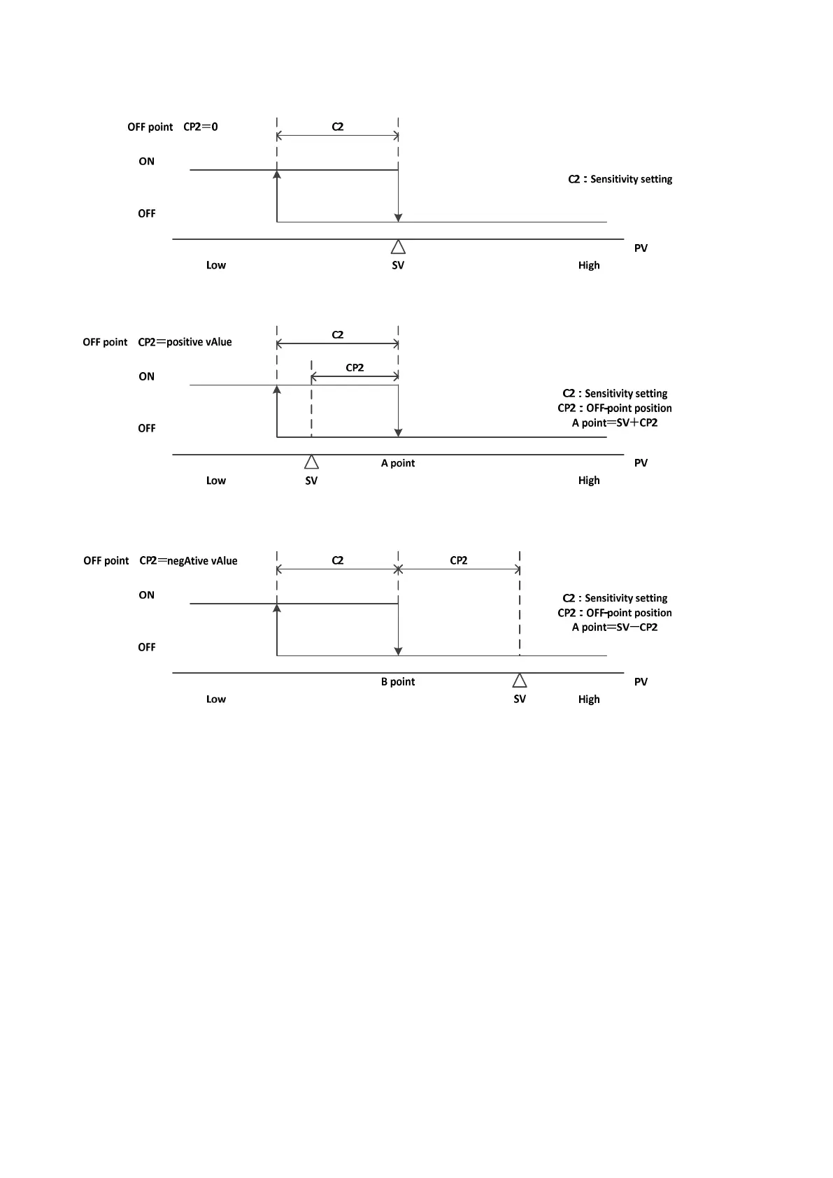 Sets the position of OFF point (offset for SV) for the ON/OFF operation of reverse action.