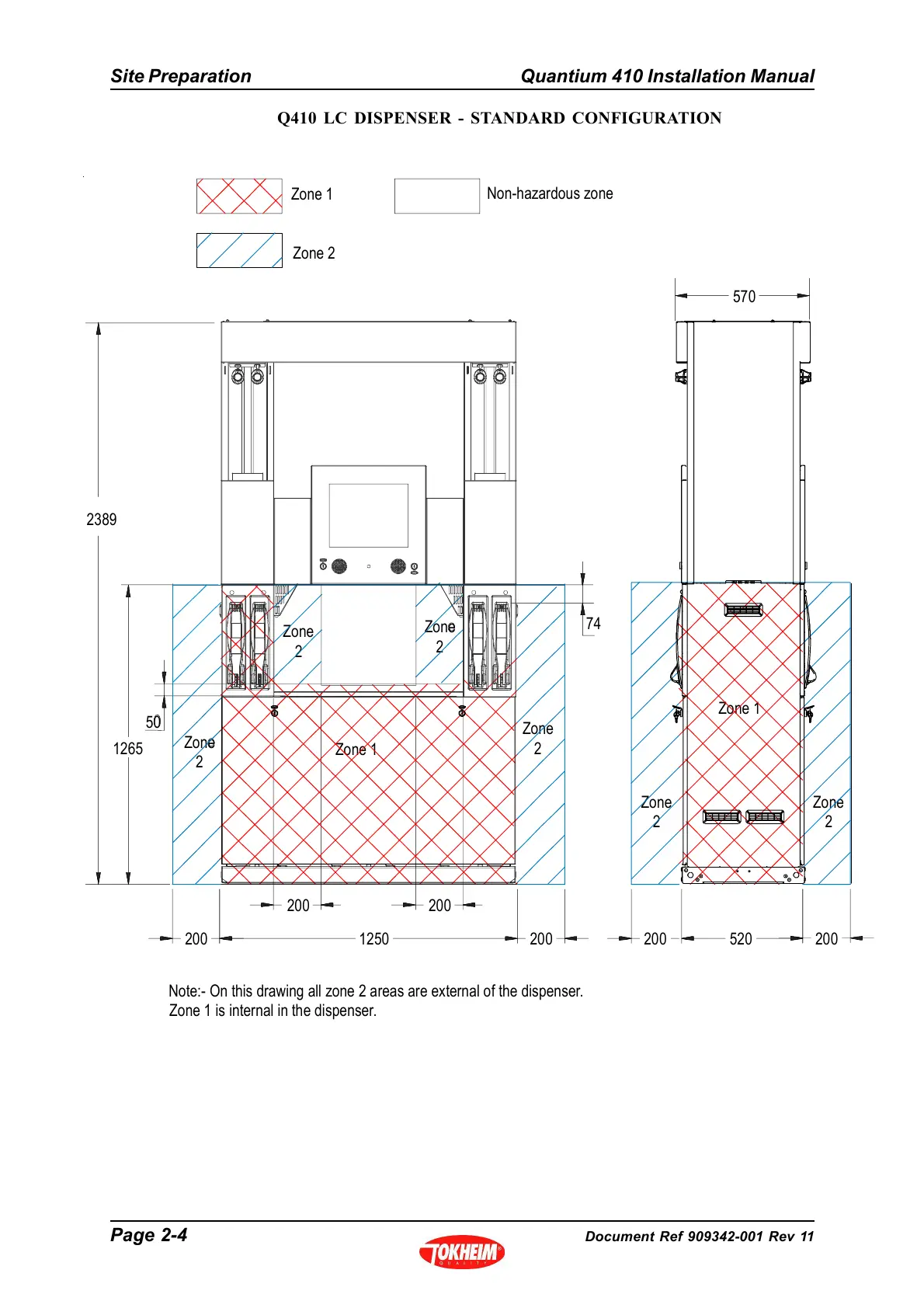 Note:- On this drawing all zone 2 areas are external of the dispenser.