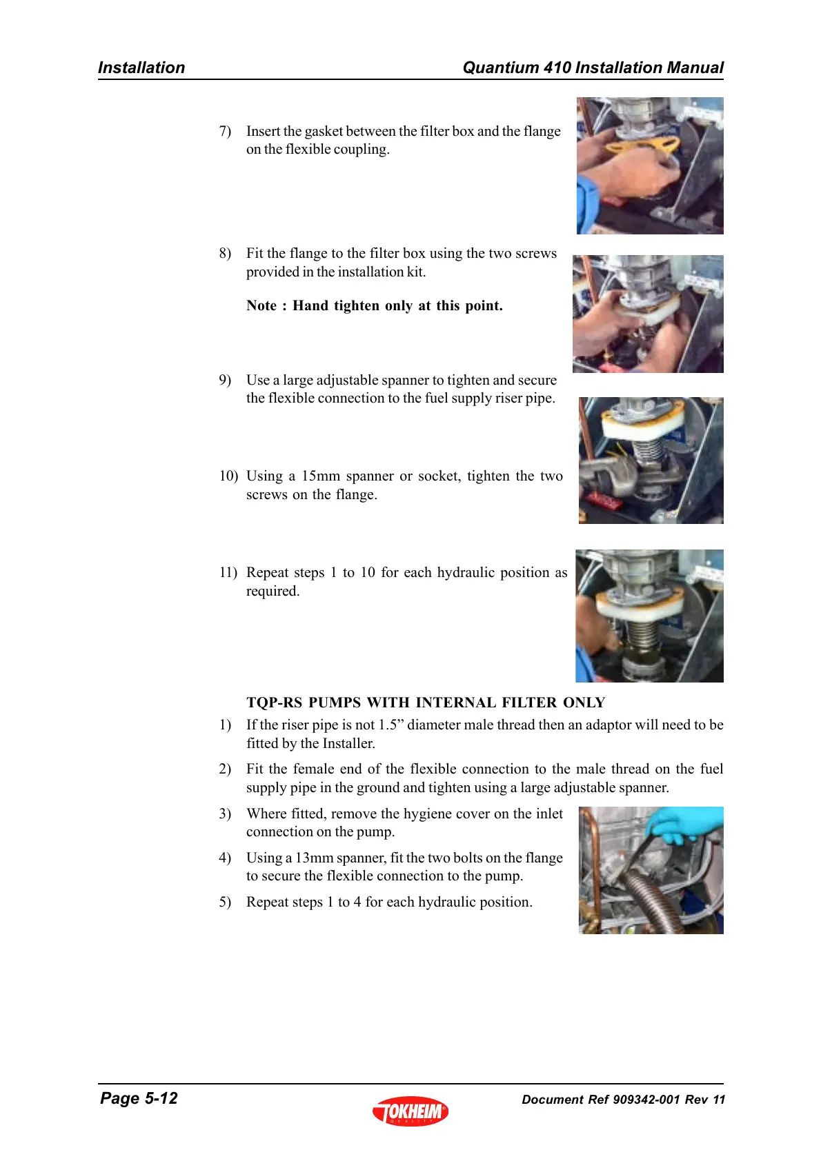 7) Insert the gasket between the filter box and the flange