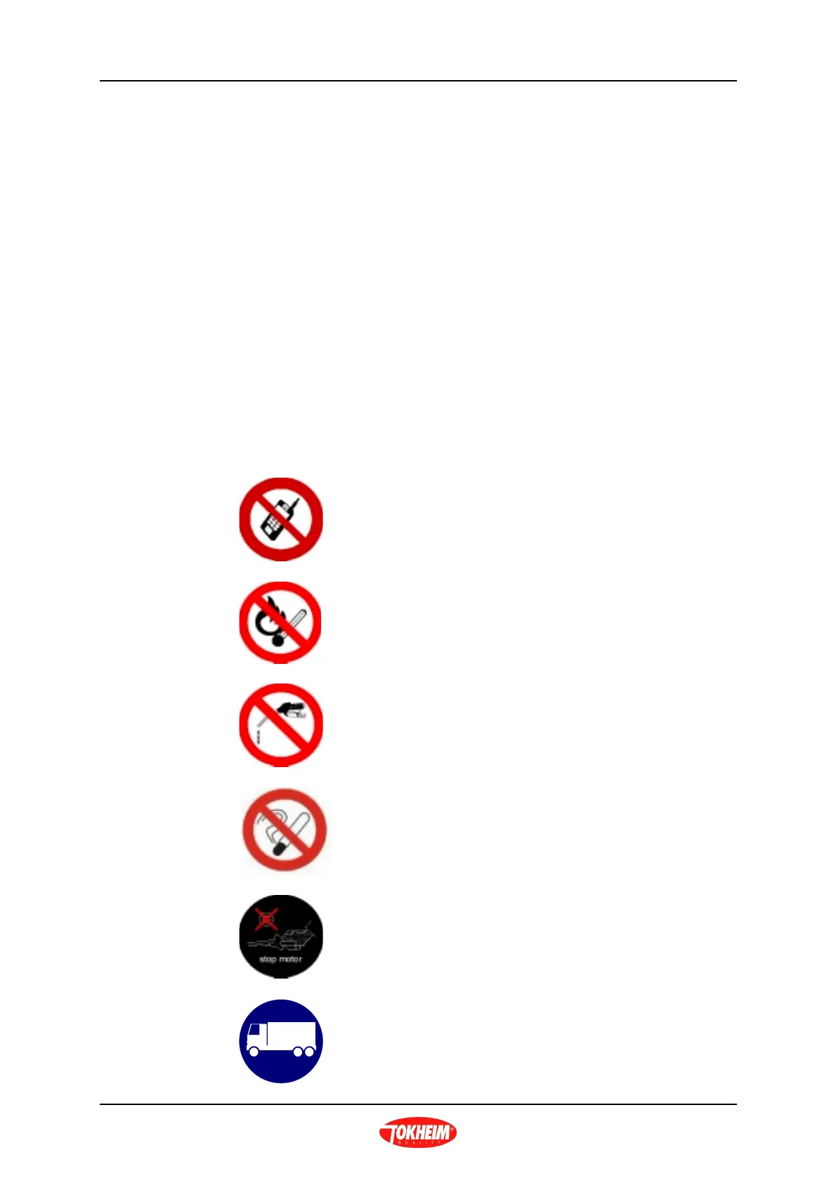 The following warning signs are fitted as standard, on the dispenser, however