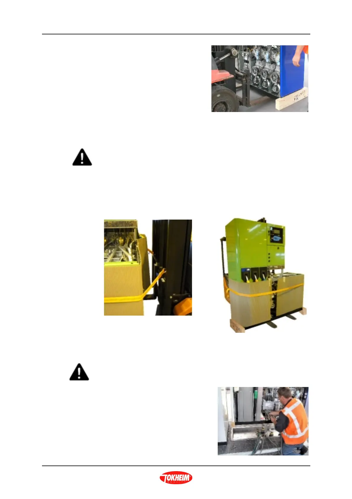 Note : Do not unstrap or remove the forklift.