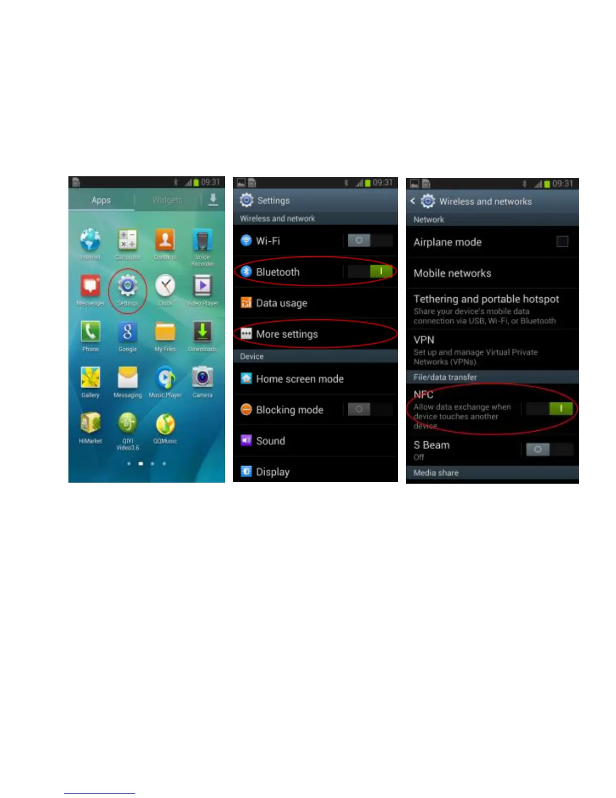 then go to More settings interface to activate NFC function.