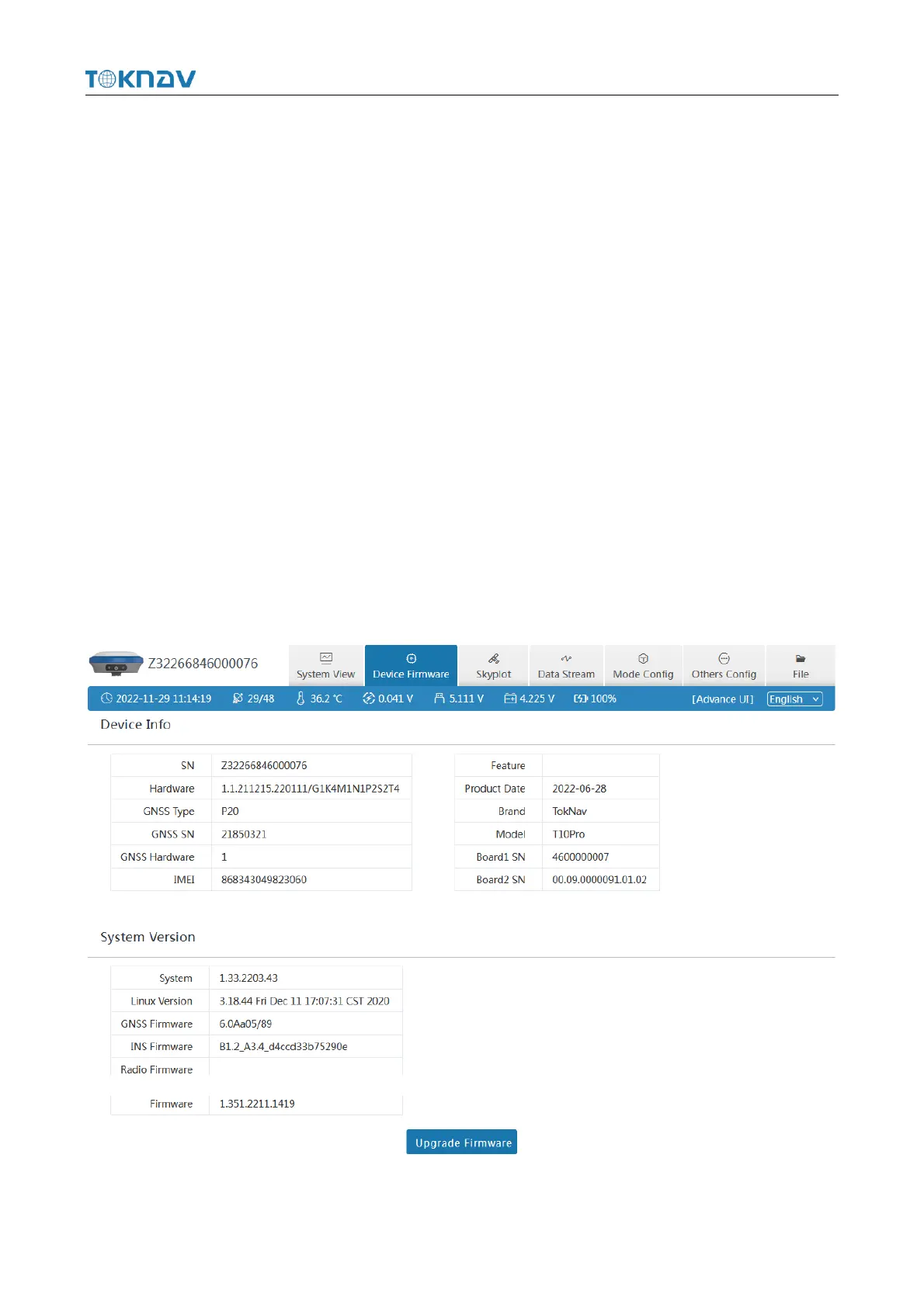 ② System Version : System, GNSS Firmware, INS Firmware, Firmware.