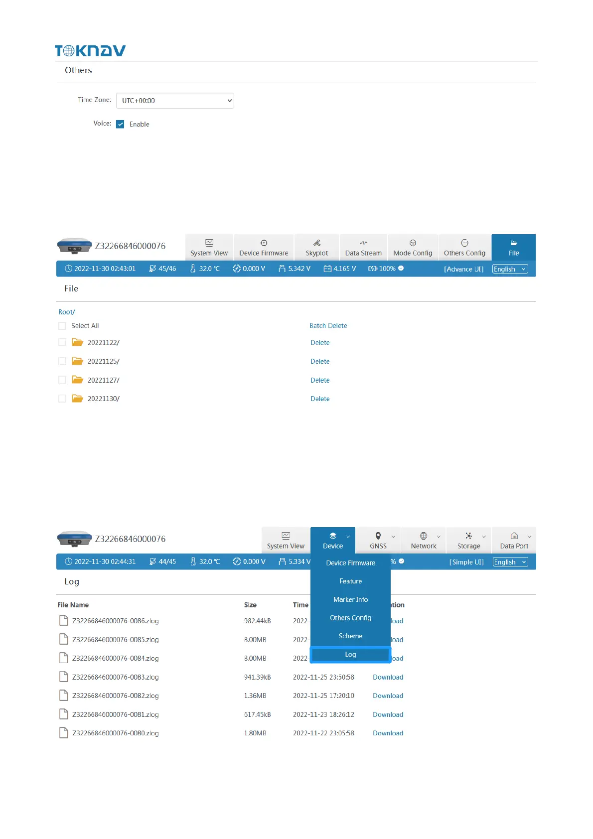 It provides the download of the operation log of the device. When the device is
