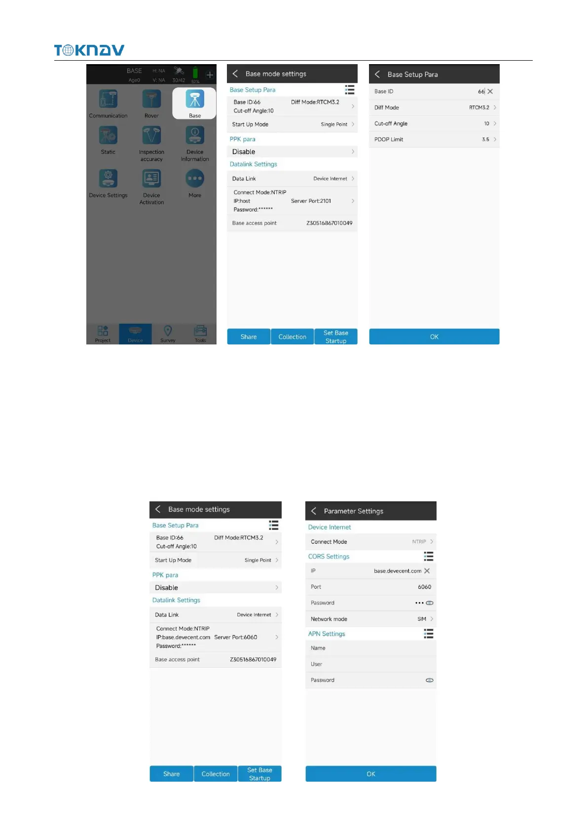 enter the parameter setting, select CORS setting and APN setting, click "OK" to