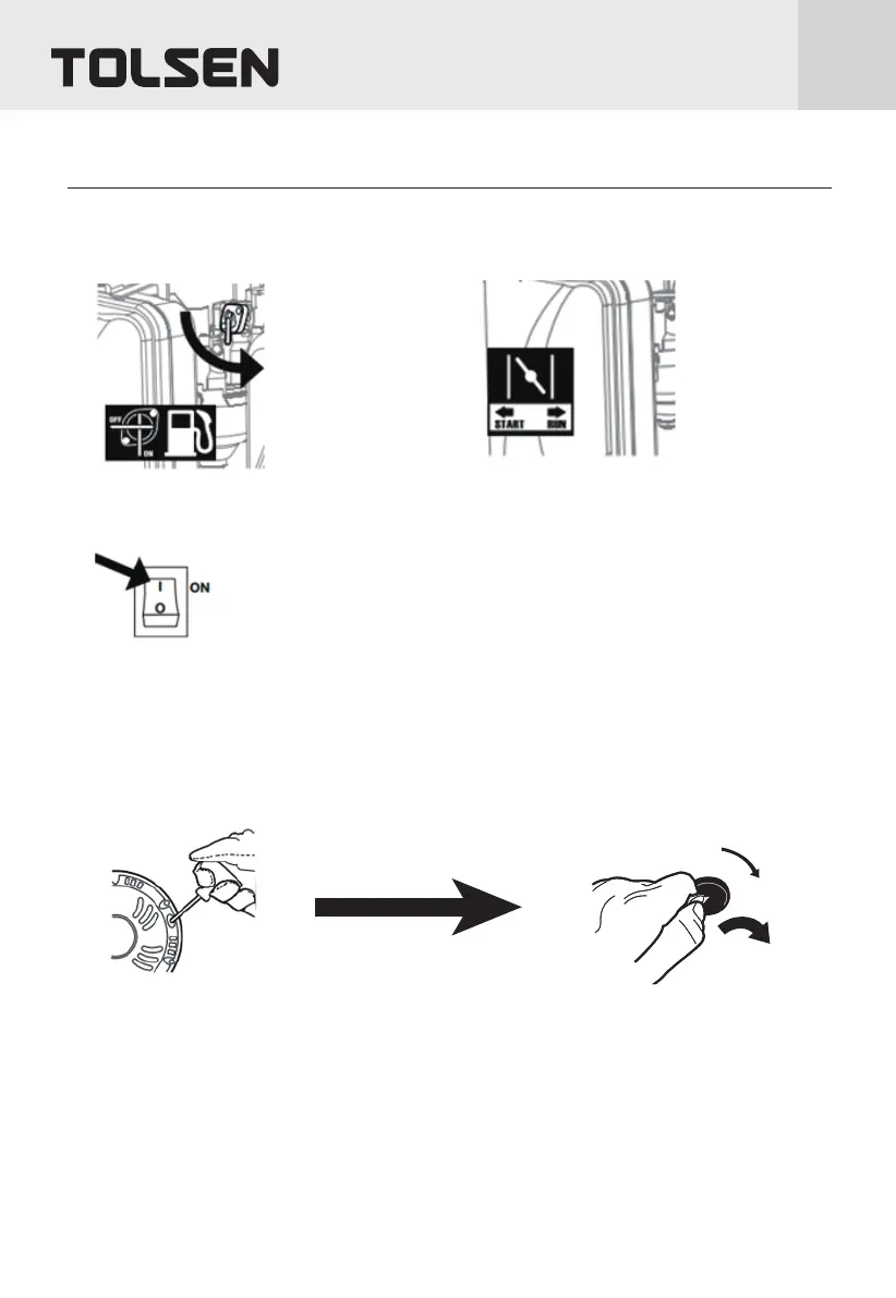 flow into the Engine’s carburetor. Then pull the Starter Handle gently until resistance is felt. Allow