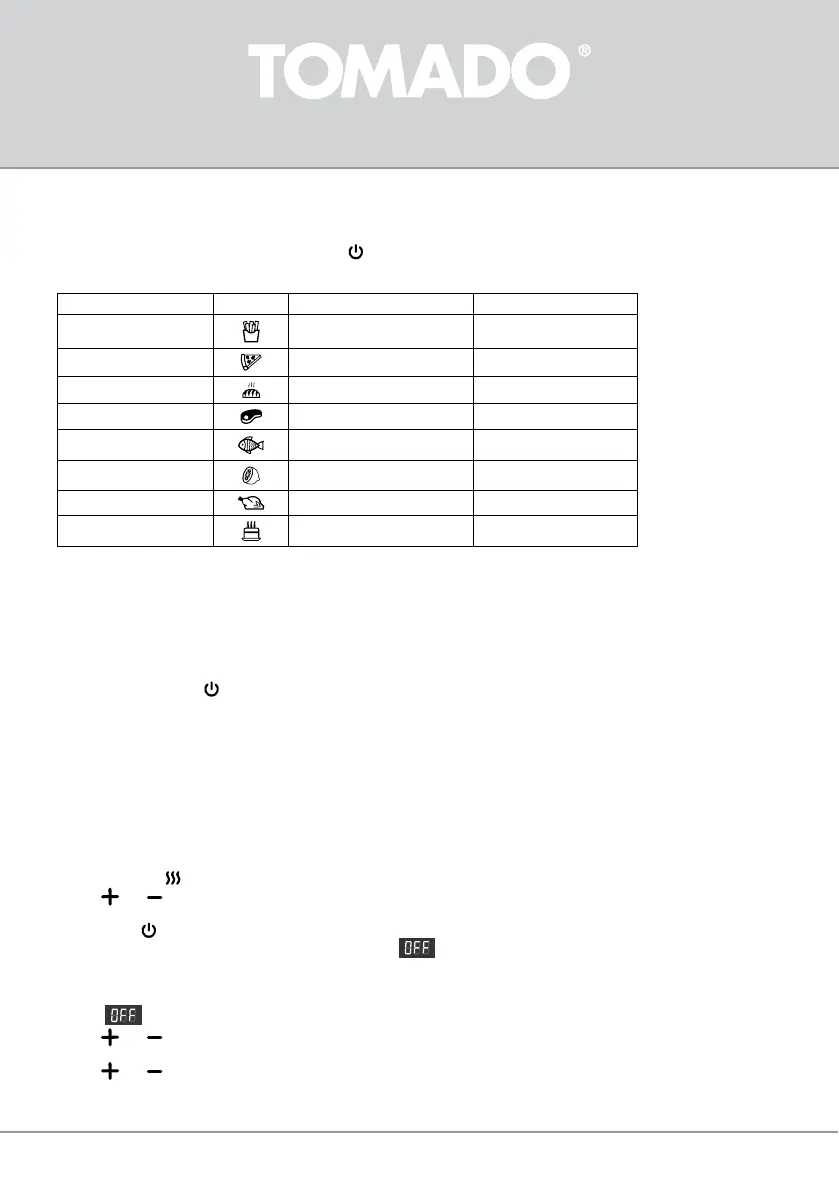 When the appliance is not yet warm, you can use this funcon before placing the food. Without preheang, the food will not