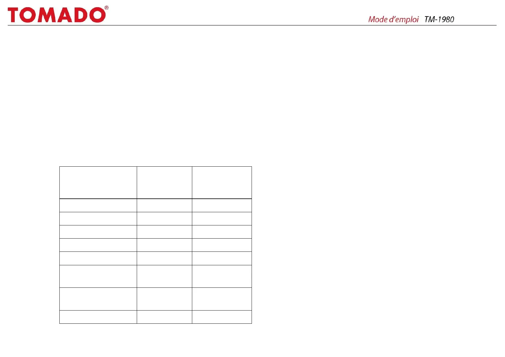 Le tableau suivant est donc fournis à titre indicatif seulement. Si les valeurs sont
