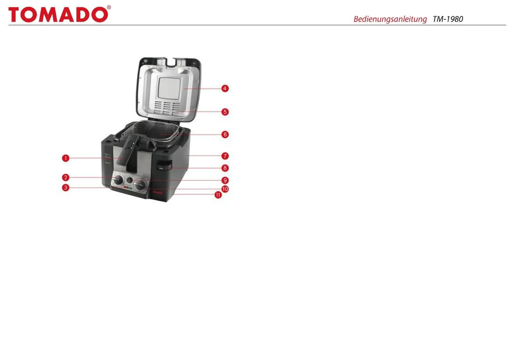 1. Verriegelungstaste/Entriegelungshebel für Frittiersieb-Griff