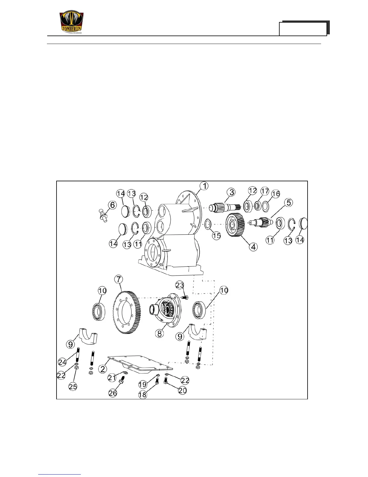 1. Gearbox body 2. Bottom cover of differential gear 3. Input shaft 4. Middle gear