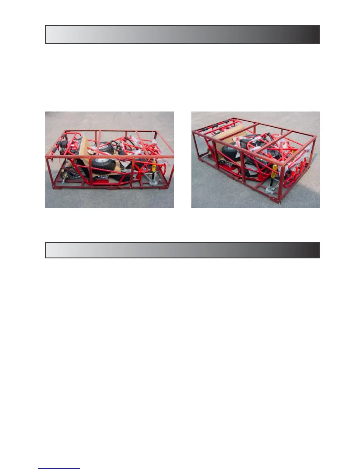 2. After all loose parts are removed, begin assembling the go-kart.
