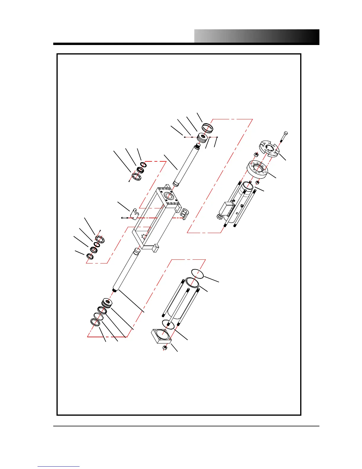 Figure 4.2.2 - Models DE89RB-500 & DE89RB-1000 Hydraulic and Compression Cylinder Exploded View