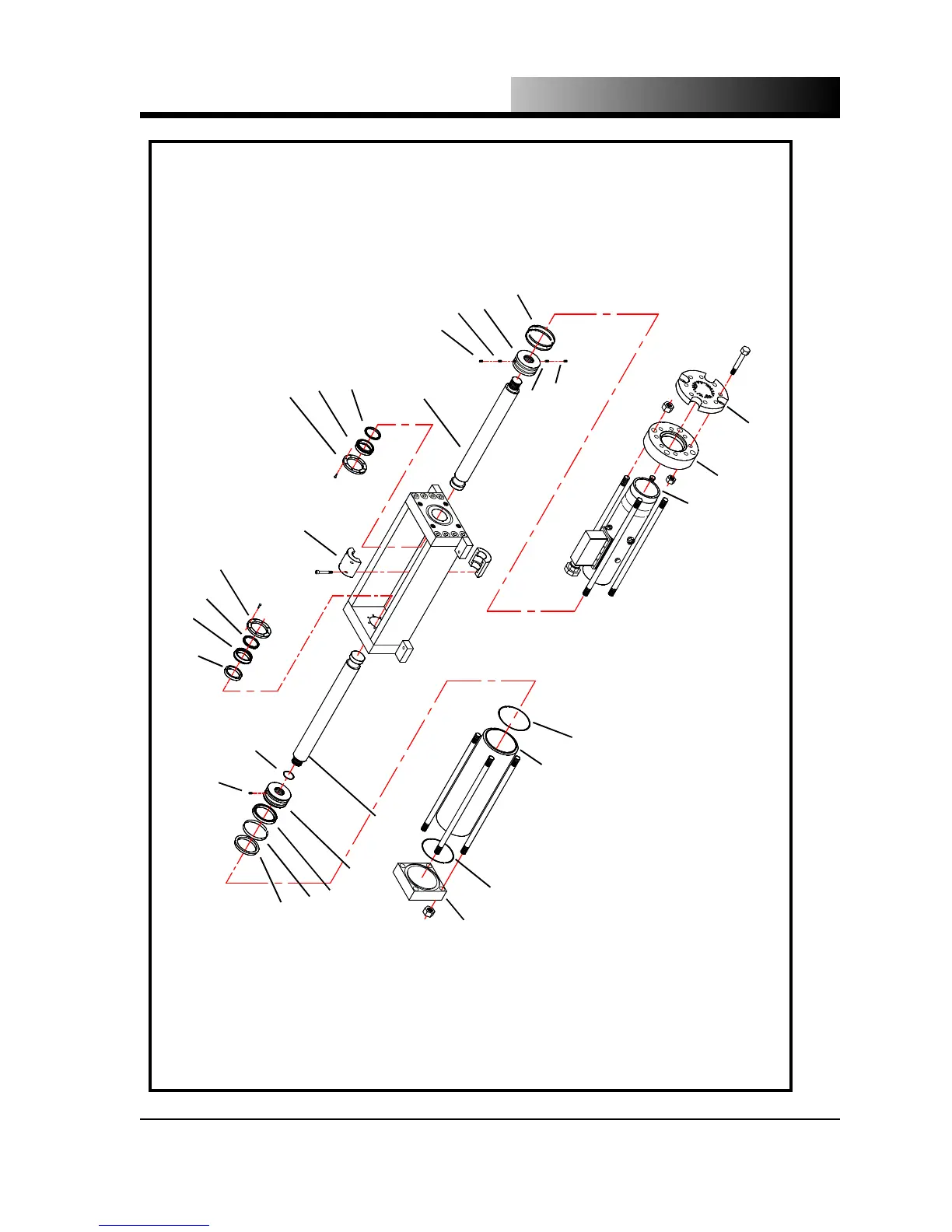 Figure 4.2.4 - Model DE89RB-1500 Hydraulic and Compression Cylinder Exploded View
