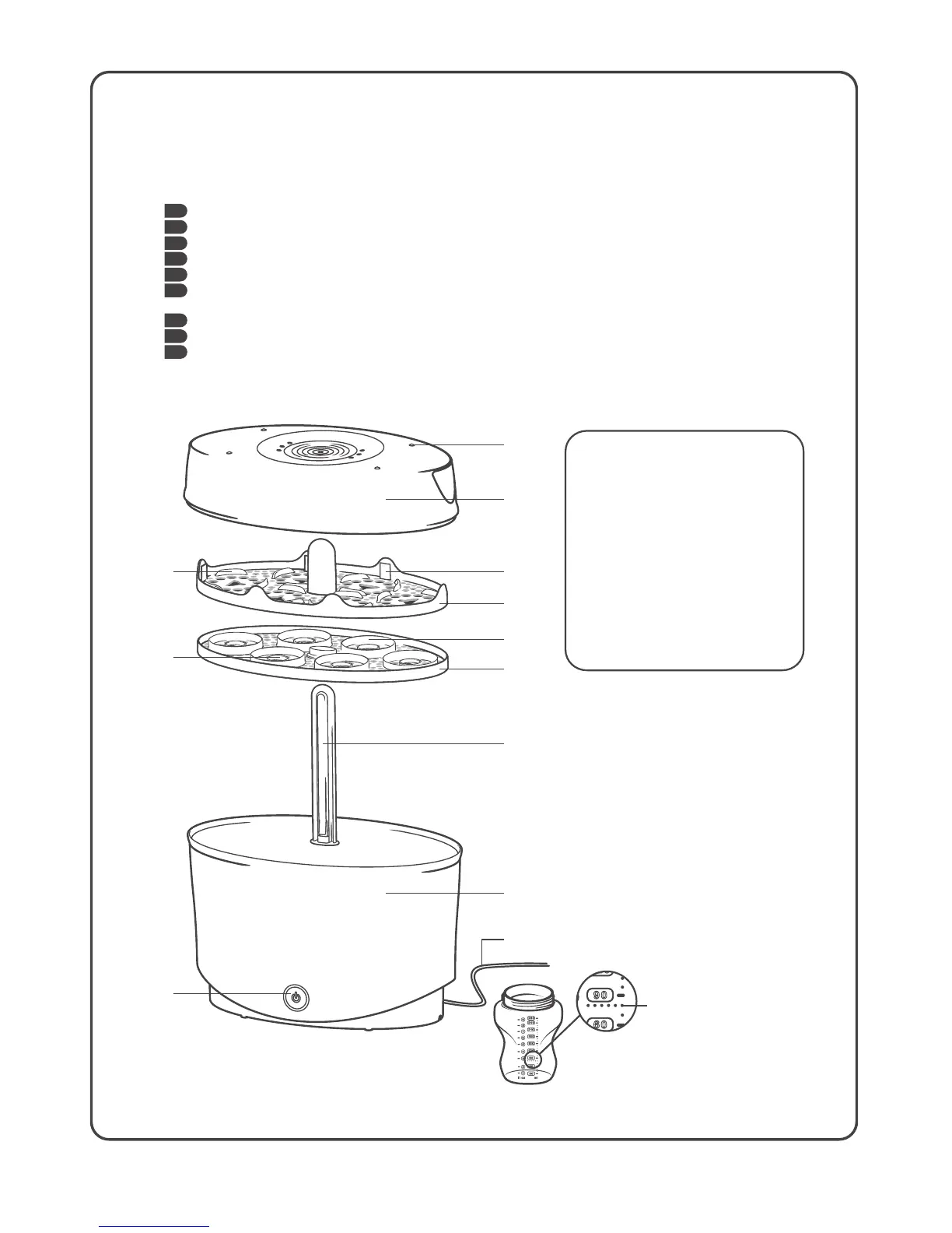 This steriliser is designed for use with closer to nature® bottles and feeding accessories (except bottle brush). The steriliser will hold up to 6 closer