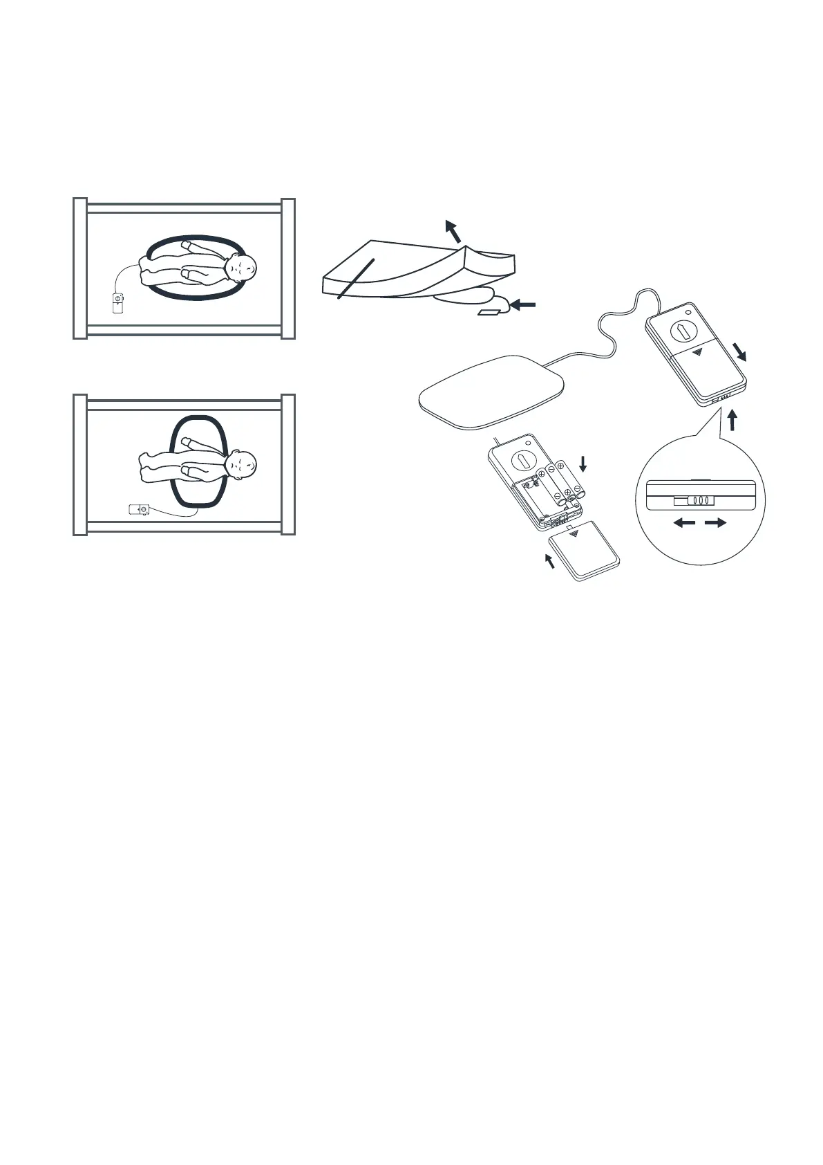 Slip the control box underneath the mattress and keep out of reach of baby, placing it as far away from