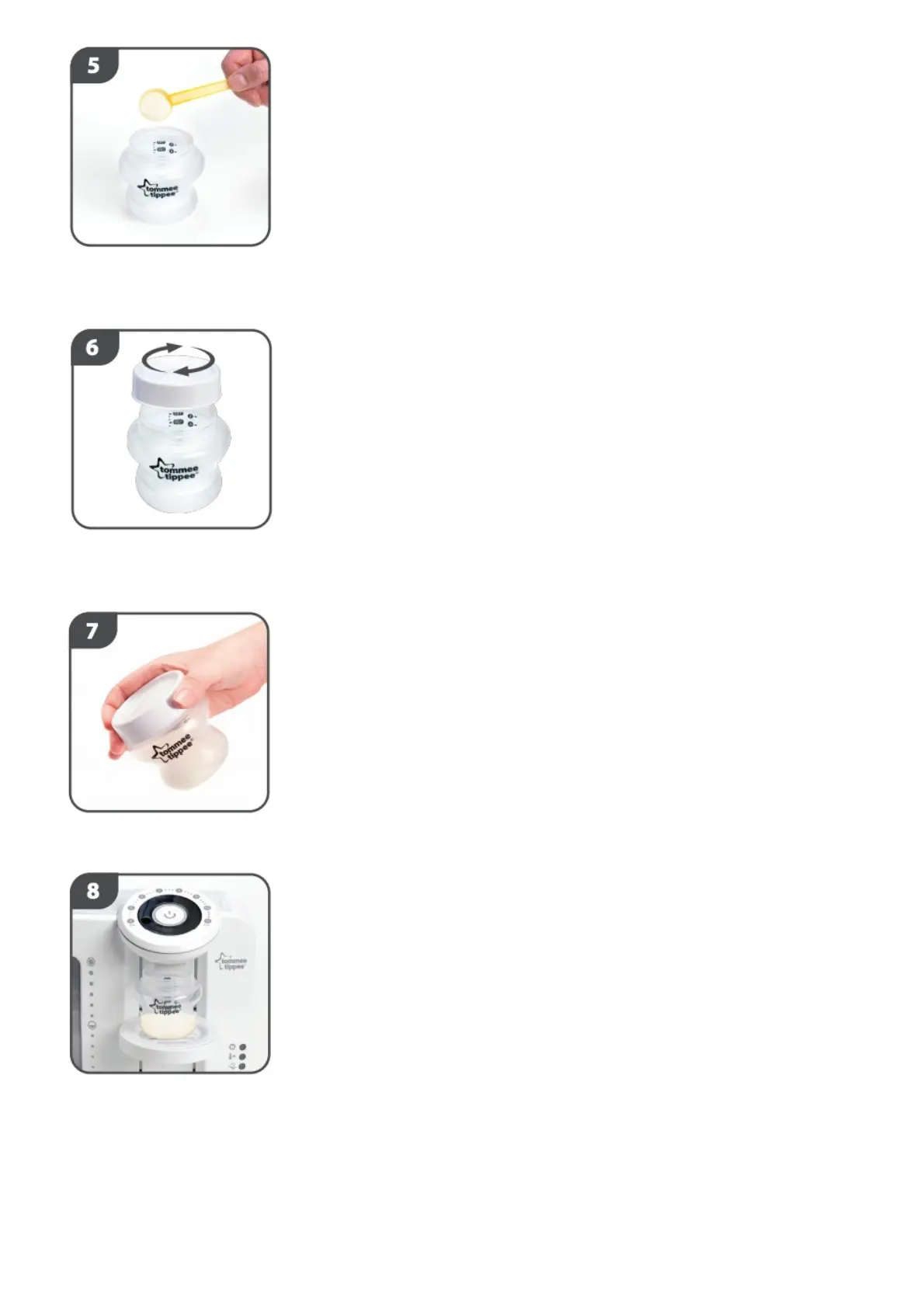 Carefully remove the bottle from the stand and measure the correct number of formula scoops into