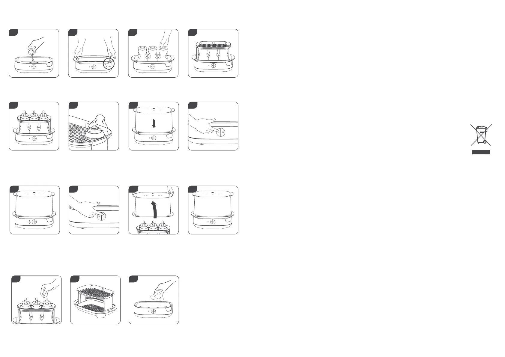 Avant la stérilisation, lavez et rincez abondamment tous les biberons et accessoires d’alimentation à l’eau savonneuse tiède ou dans un lave-vaisselle