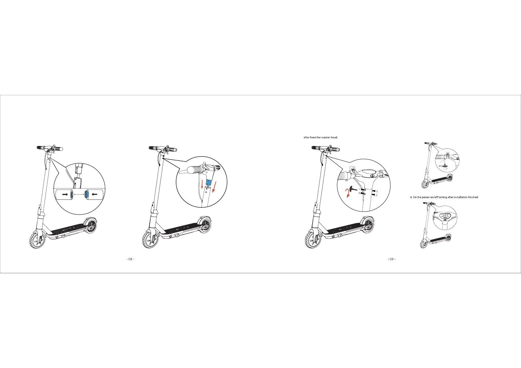 5. Insert and install the head into the pole. 6. Use the M3 Allen key, twist the screws slightly in order