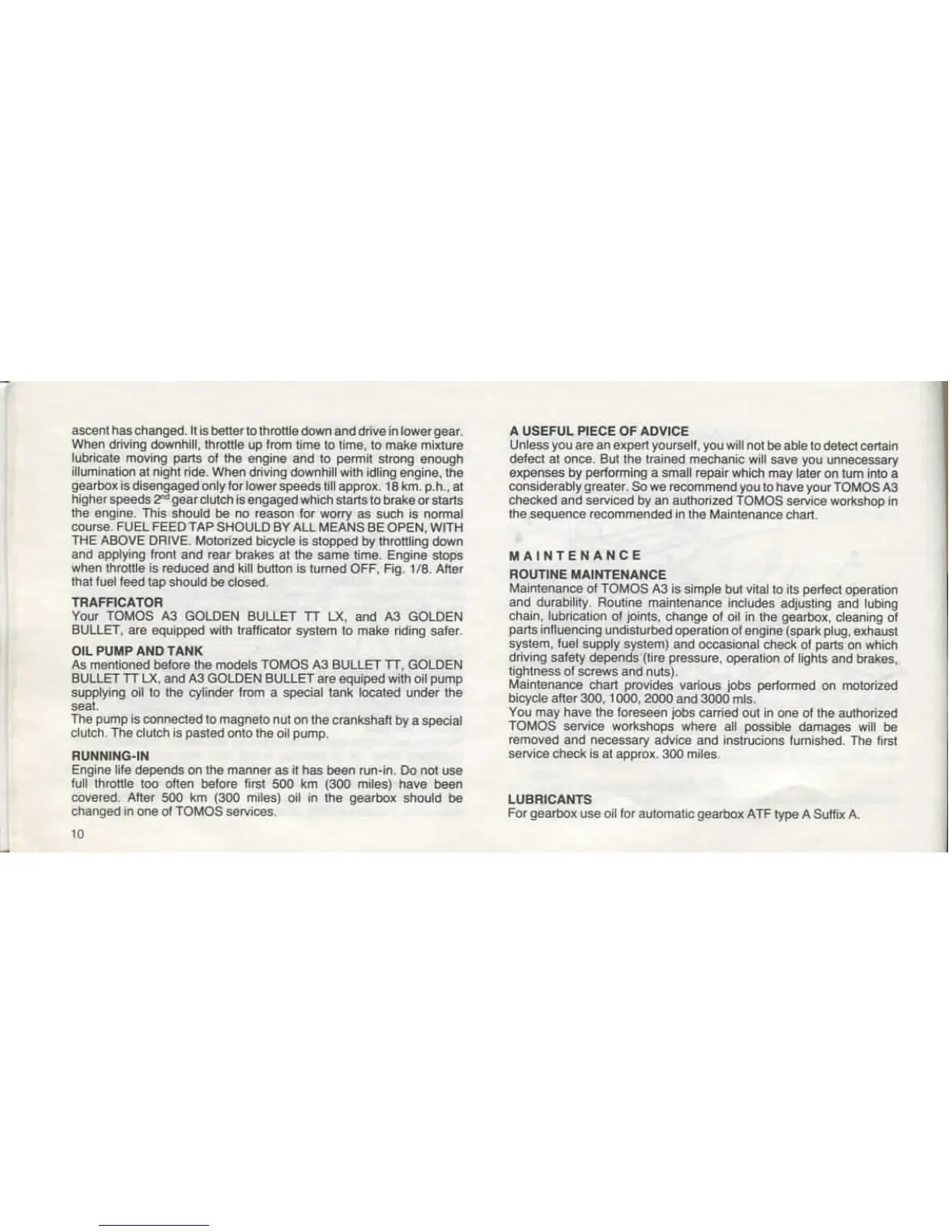 Tomos A3 E BULLET - Trafficator; Oil Pump and Tank; Running-In; Maintenance