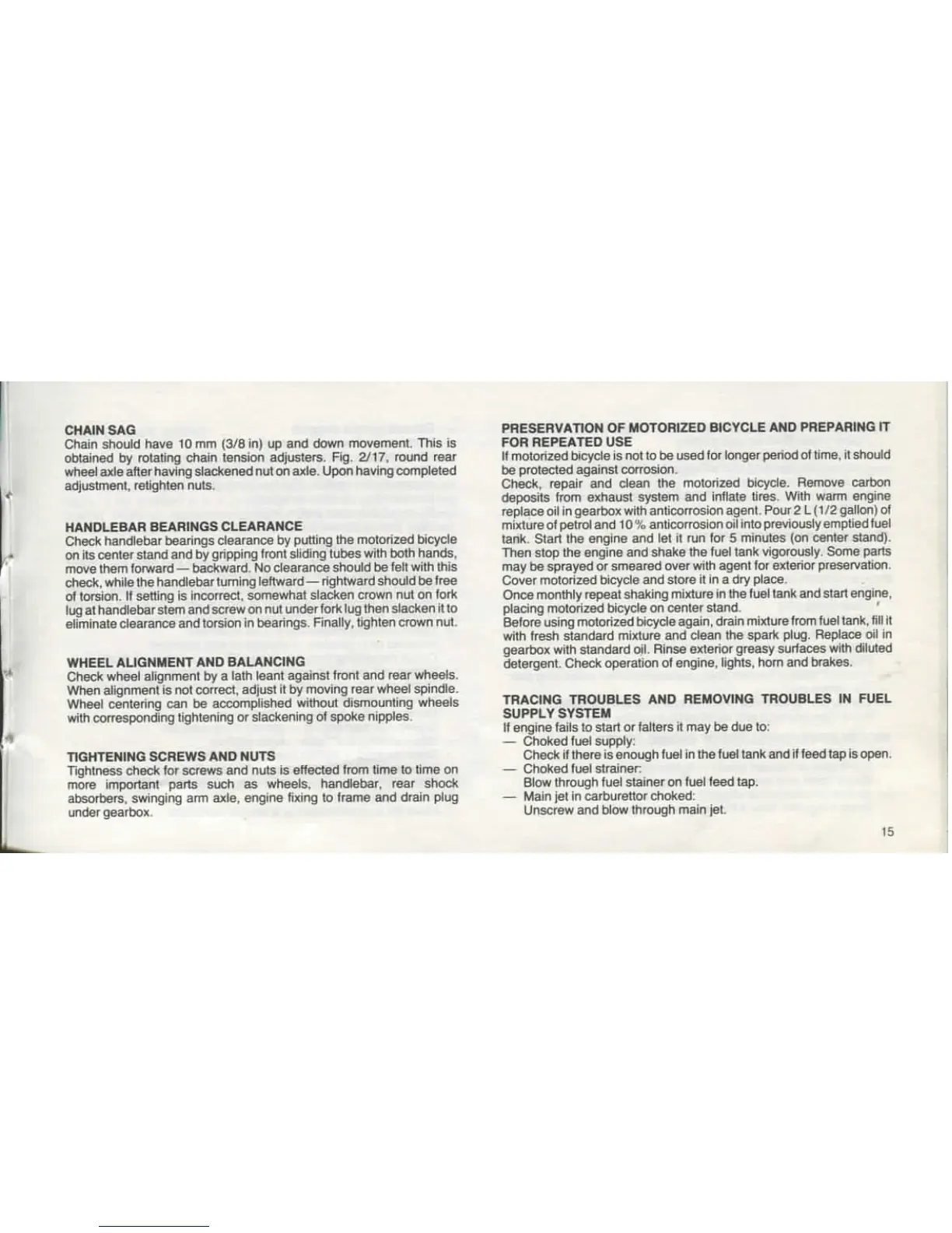 Tomos A3 E BULLET - Chain Sag; Handlebar Bearings Clearance; Wheel Alignment and Balancing; Tightening Screws and Nuts