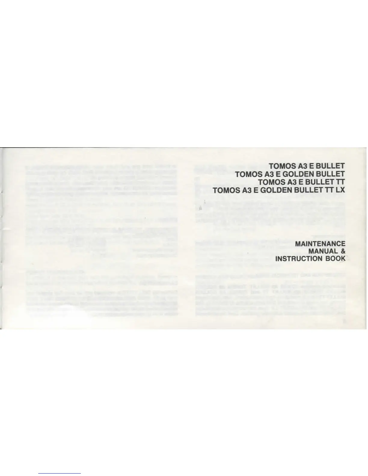 Tomos A3 E BULLET - Maintenance Manual & Instruction Book