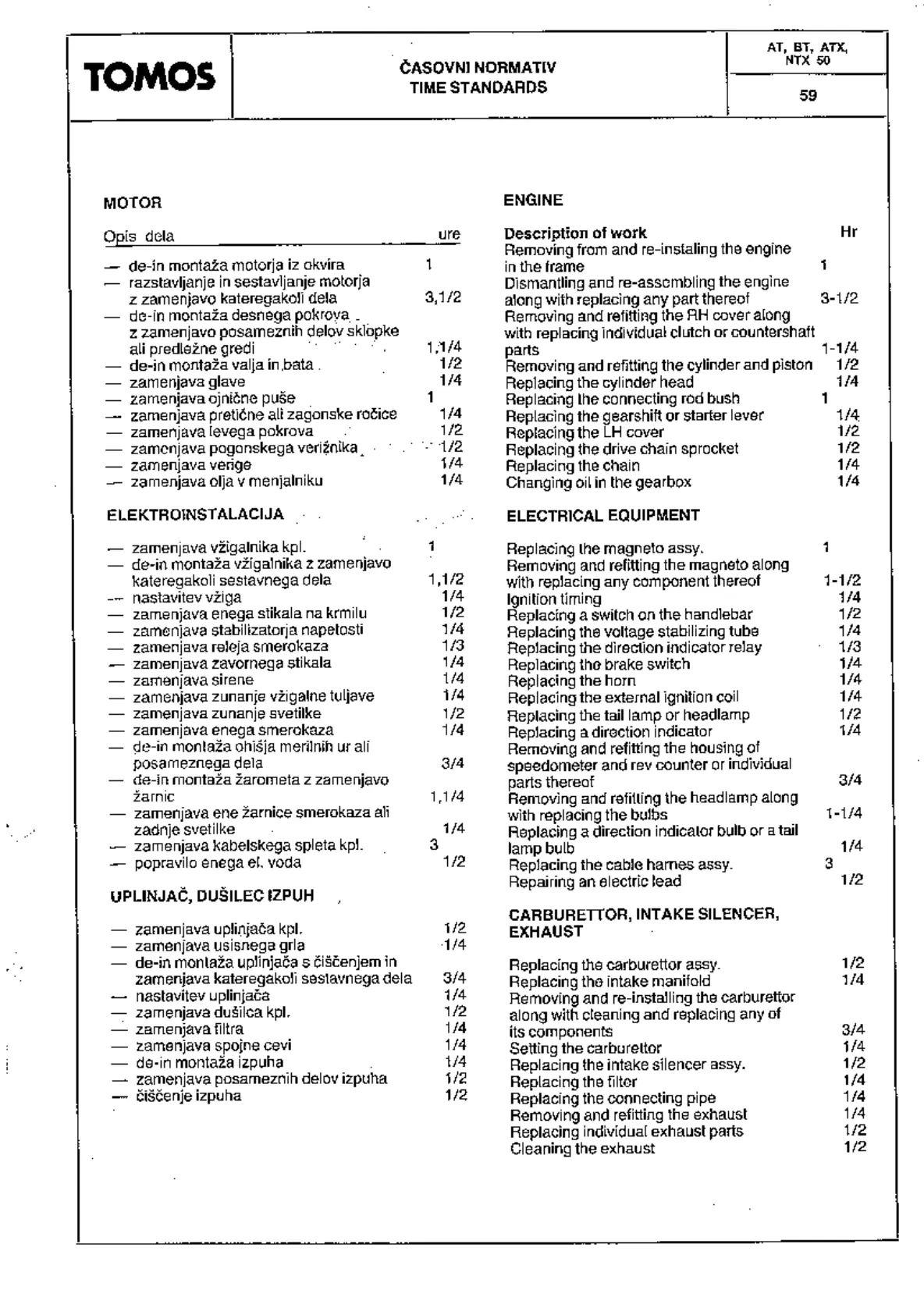 Tomos AT 50 - Time Standards; Electrical Equipment