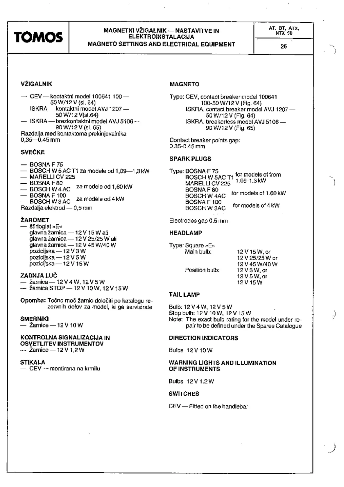 Tomos ATX 50 - Electrical System Maintenance; Ignition System Components and Timing; Lighting, Switches, and Wiring Diagrams