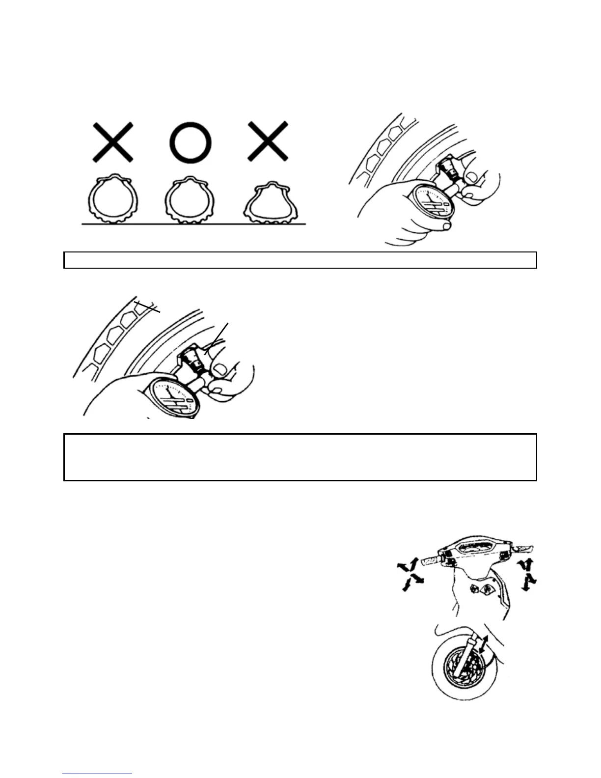 • Tires pressure must be checked with an air pressure gauge when cold.