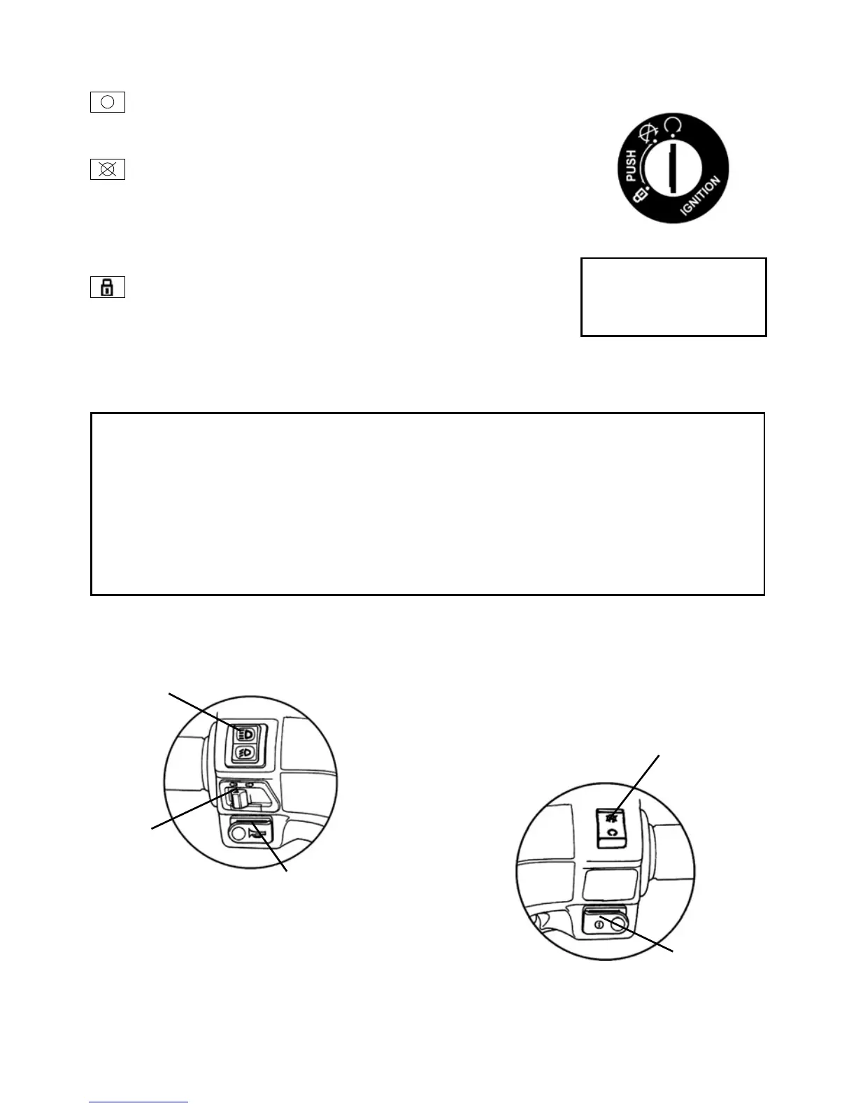 •Nikoli ne obračajte ključa za vžig, kadar motor teče. Če obrnete stikalo za vžig v položaj “OFF” in “LOCK”,